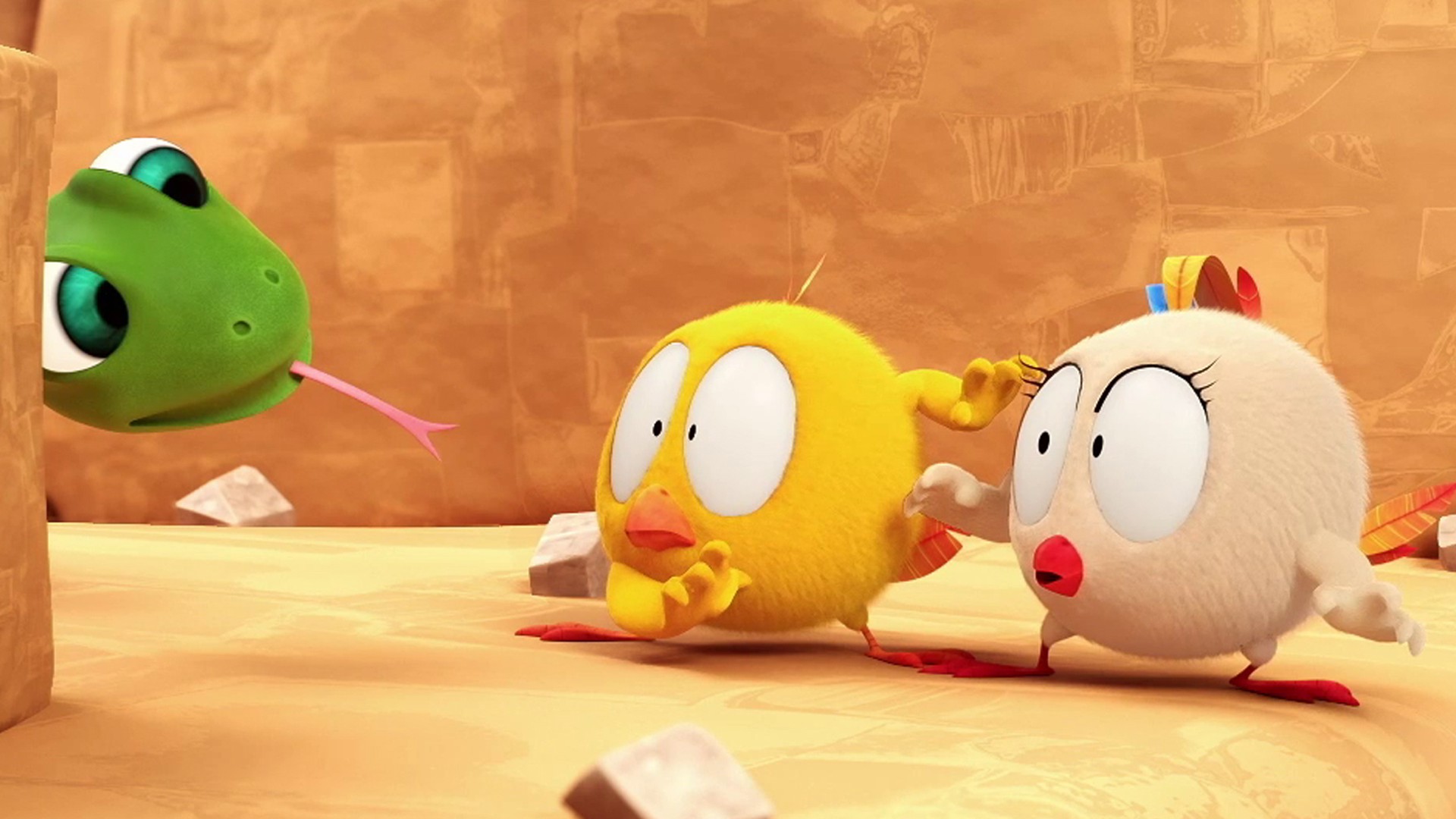 ¡Desde la Kasbah de los Udayas hasta los templos de Abu Simbel, seguimos a Chicky, el pájaro de dibujos animados, y a sus amigos Bekky y Poyo mientras viajan a través de monumentos míticos en África!