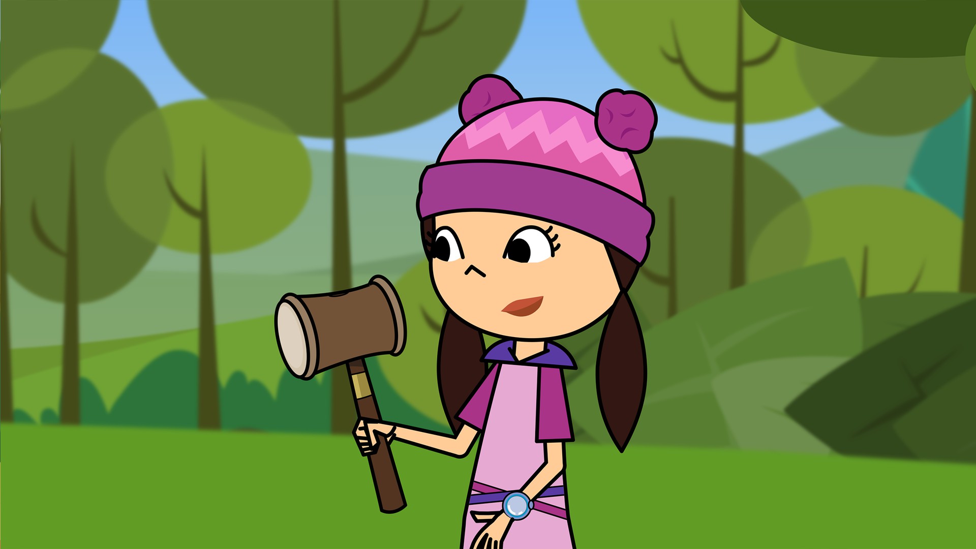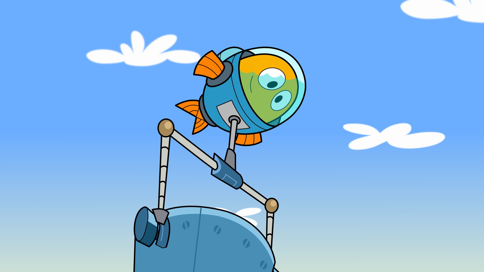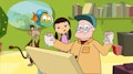Un ruido desconocido llama la atención de nuestros tres héroes. Peztronauta sobrevuela el parque y descubre las obras de un puente justo enfrente al Parque. la Pop libera una retro excavadora y una cama de juguete.