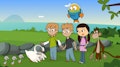 Marina debe completar un álbum de fotografías de los animales del parque para un trabajo escolar. Una tortuga morrocoy cae en la copa de un nogal muy alto después de ser lanzado accidentalmente mientras jugaba en el sube y baja con un hipopótamo.