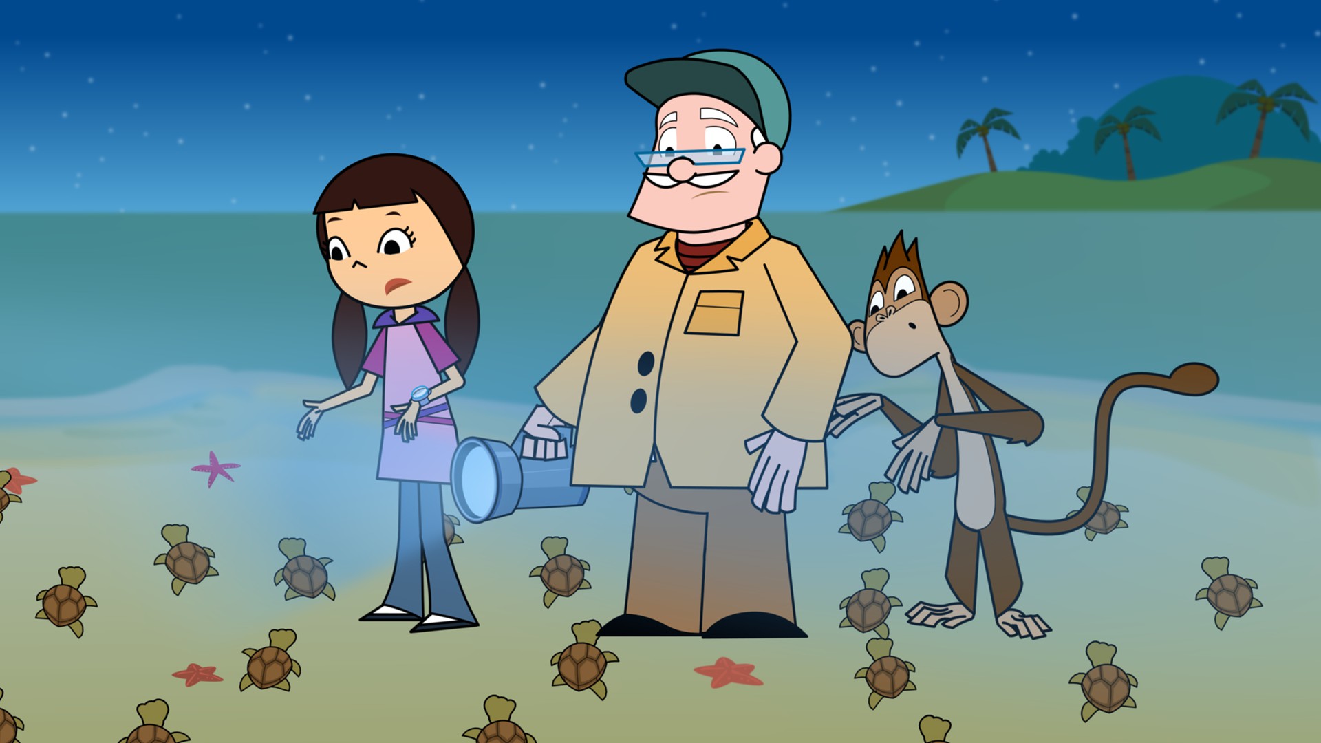 Varios animales nocturnos se quejan de rayos de luz repentinos que aparecen y desaparecen en el parque. Las tortugas mama están preocupadas, esperando que sus hijitos salgan de los huevos que ellas han dejado en la playa.