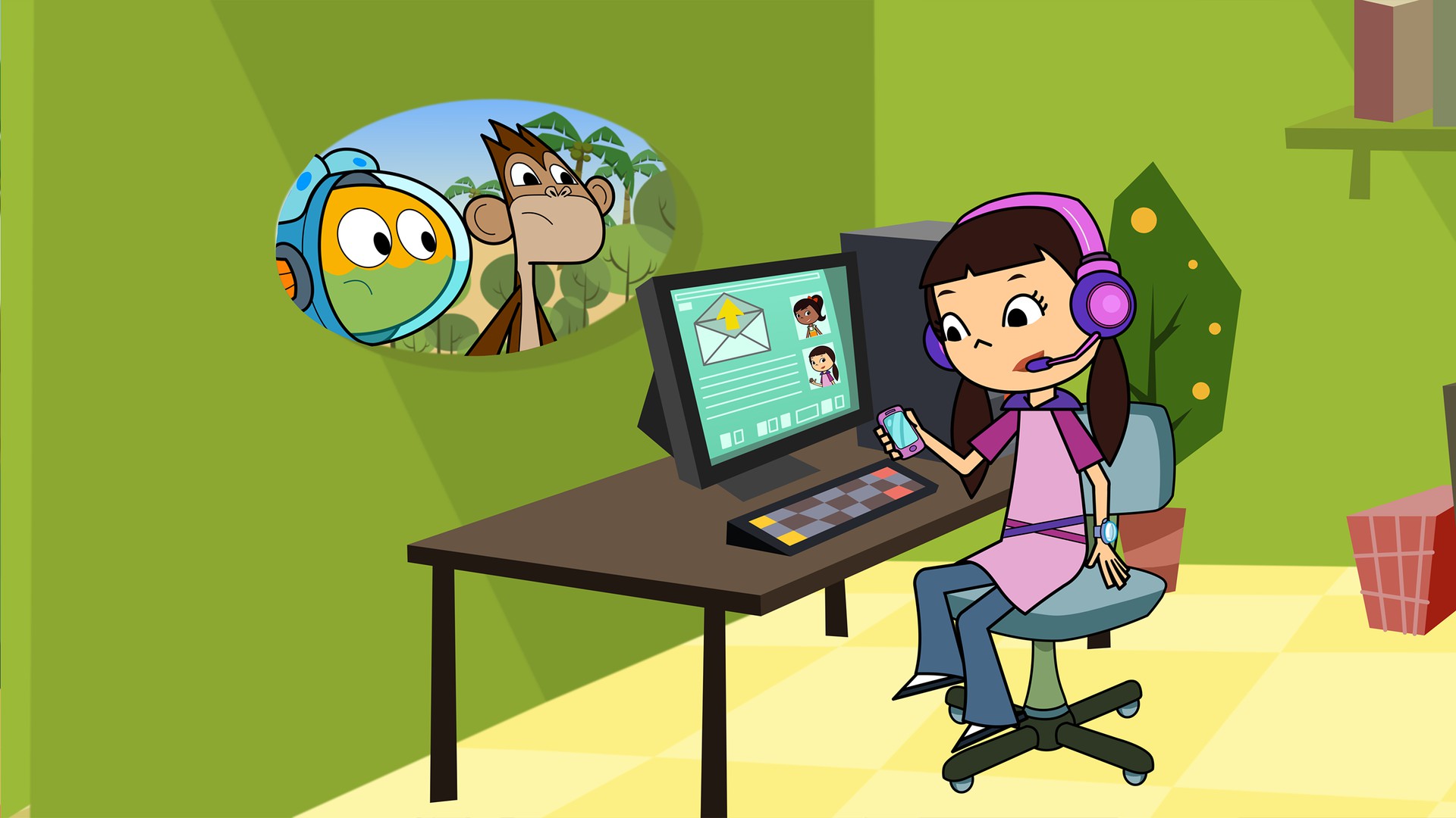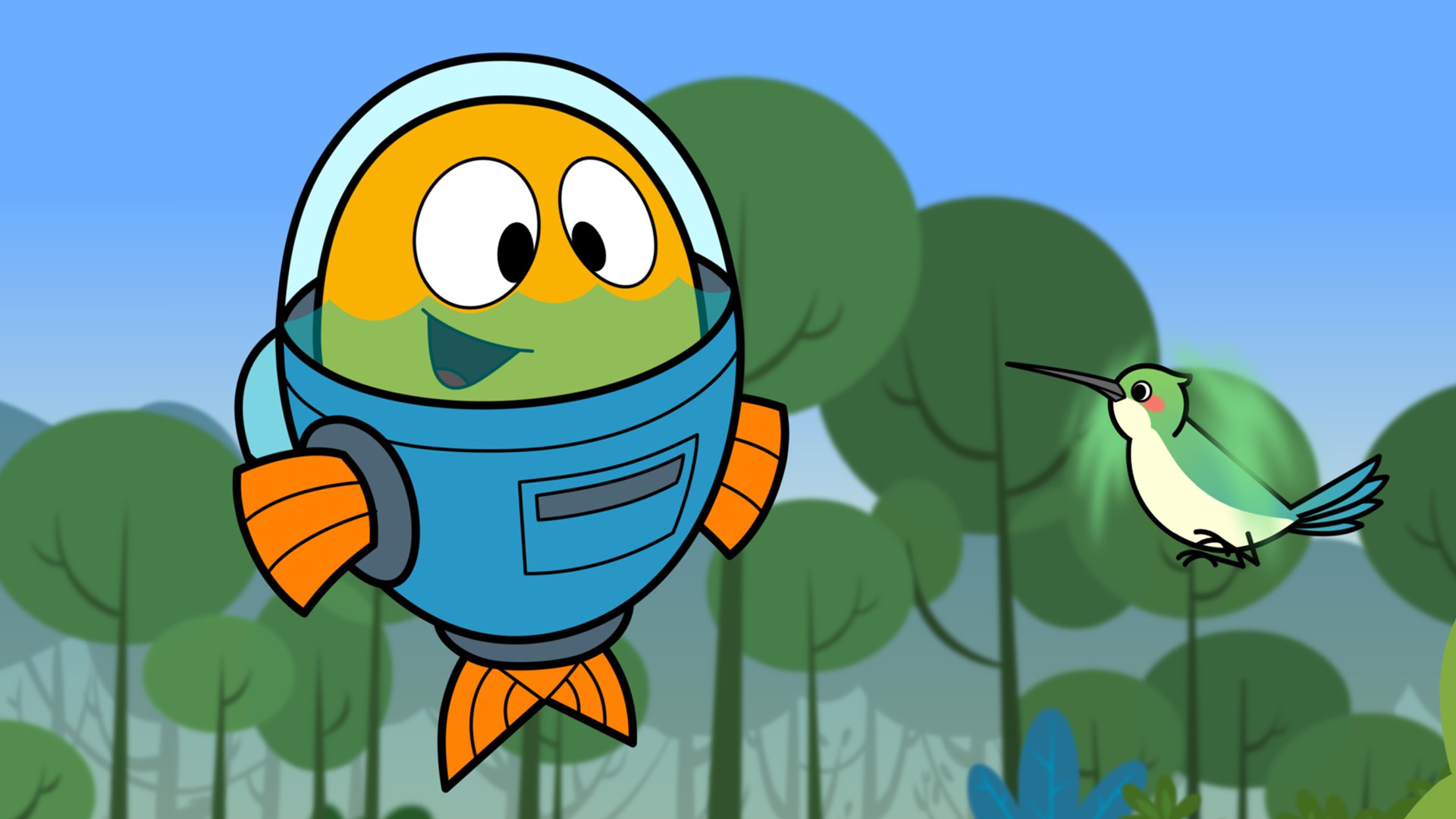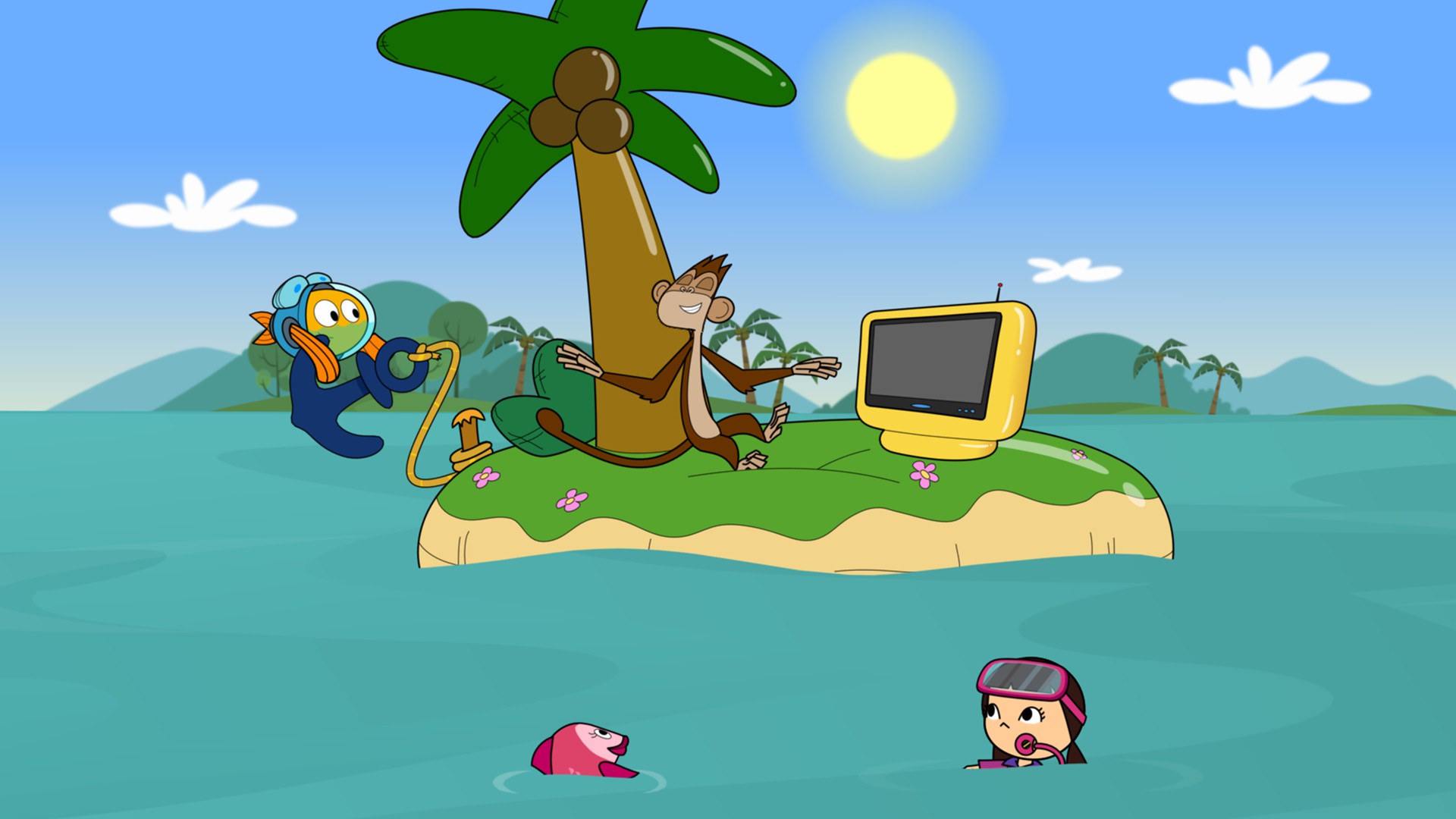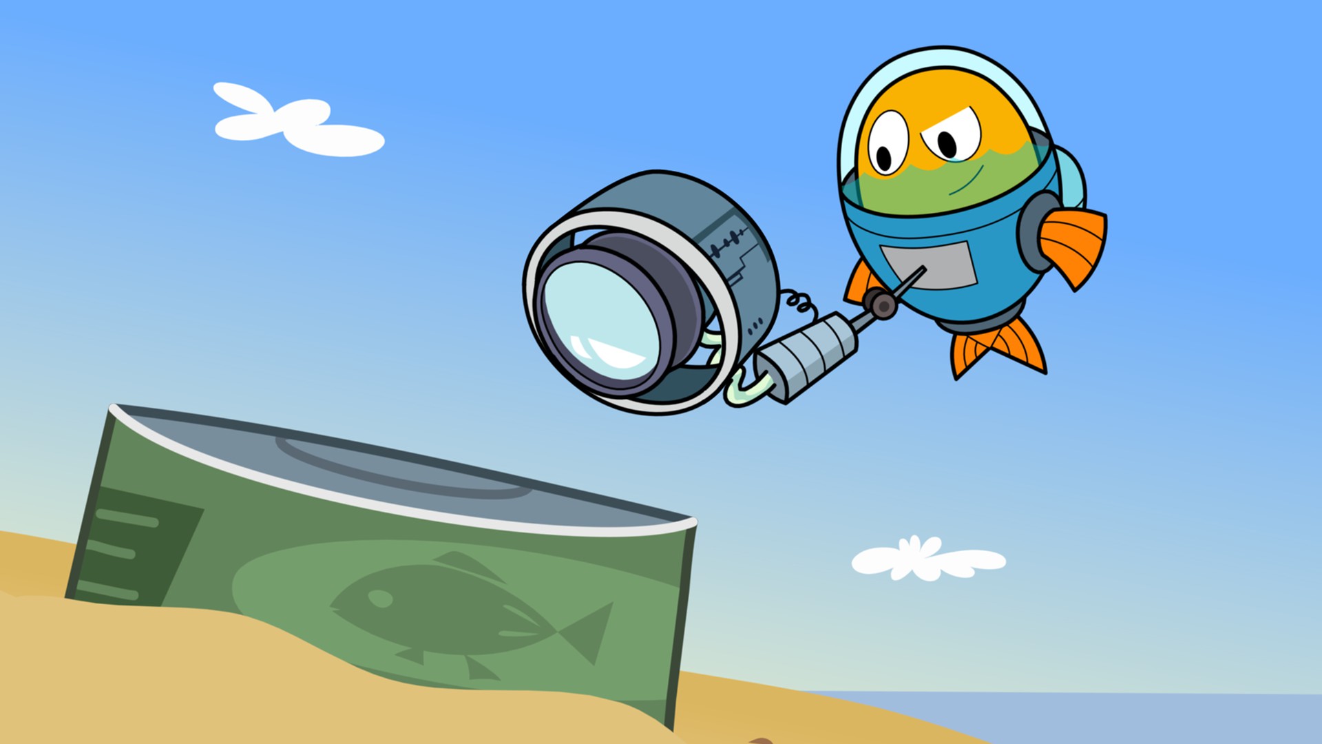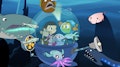 Peztronauta y Marina se divierten en la festa de aniversario de una amiga manta raya. Ella está triste porque algunos amigos no vinieron a la fiesta. Una POP trae estas pistas: un cuadro en blanco y una manguera de jardín.
