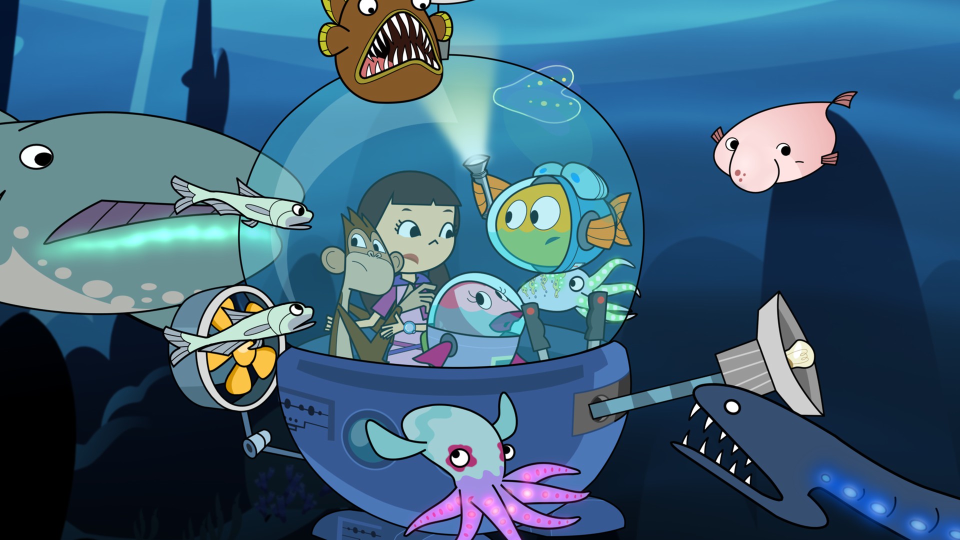 Agente Rosa está tomando fotos submarinas. De repente, observa un pez que nunca vio antes. Se trata de un pez abisal que perdió su camino porque su linterna está dañada. Nuestros héroes lo ayudan a regresar a casa.
