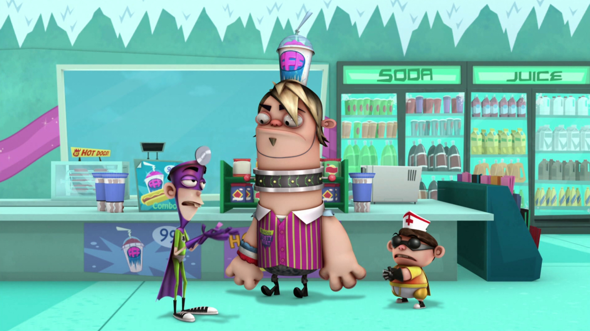 Boog tendrá que aprender a dejar de golpear o de lo contrario perderá su empleo en el Frosti Mercado. / Fanboy, Chum Chum y sus amigos invitan al Hombre Ártico a jugar Las Estatuas Congeladas.