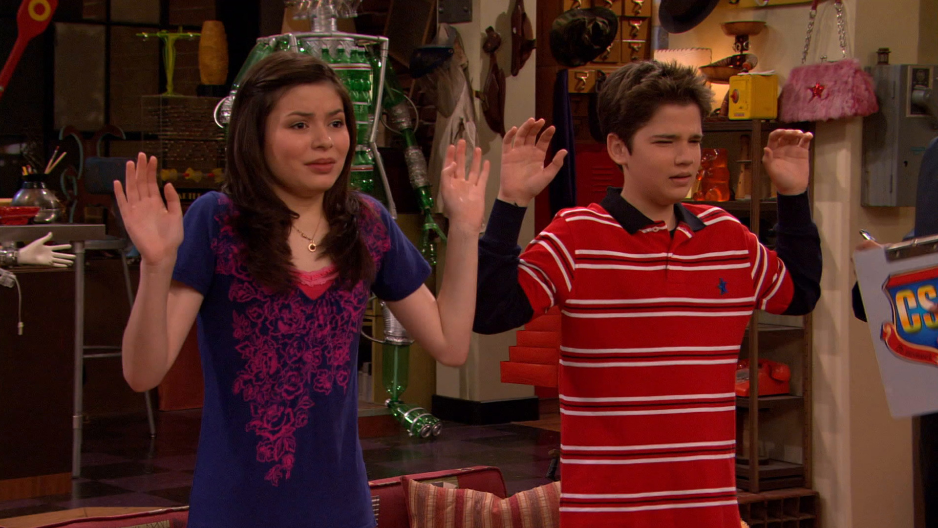 Luego de ver un segmento en iCarly donde un hombre vende copias de películas ilegales, dos detectives deciden usar el apartamento de Carly y Spencer como puesto de vigilancia