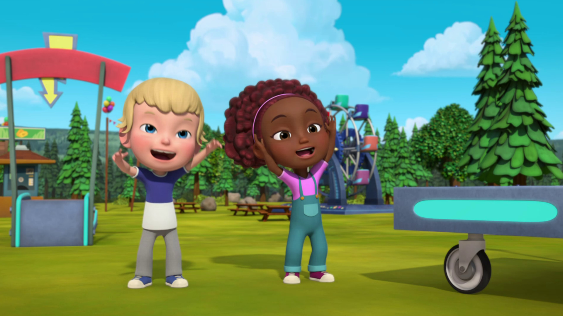 Liam está ansioso por llevar a Emily a la montaña rusa, pero, ¿llegará la montaña rusa a la ciudad? / Rusty y Ruby traen a un Robo-asistente para ayudar a la maestra Betty, pero cuando falla, se desata el caos.