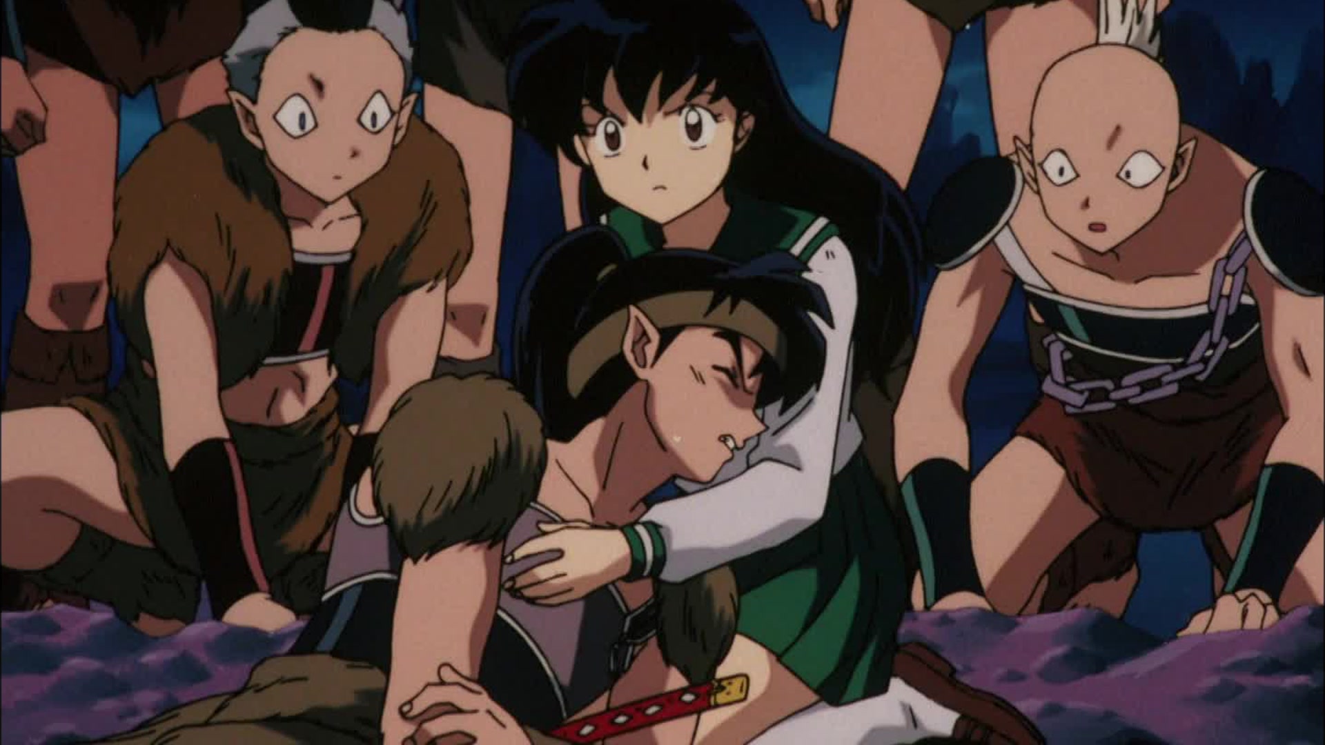 Ryukotsusei derriba a la Tetsusaiga, e Inuyasha se transforma en un demonio. Totosai les dice a todos que se retiren porque están en peligro, pero Kagome decide quedarse atrás.