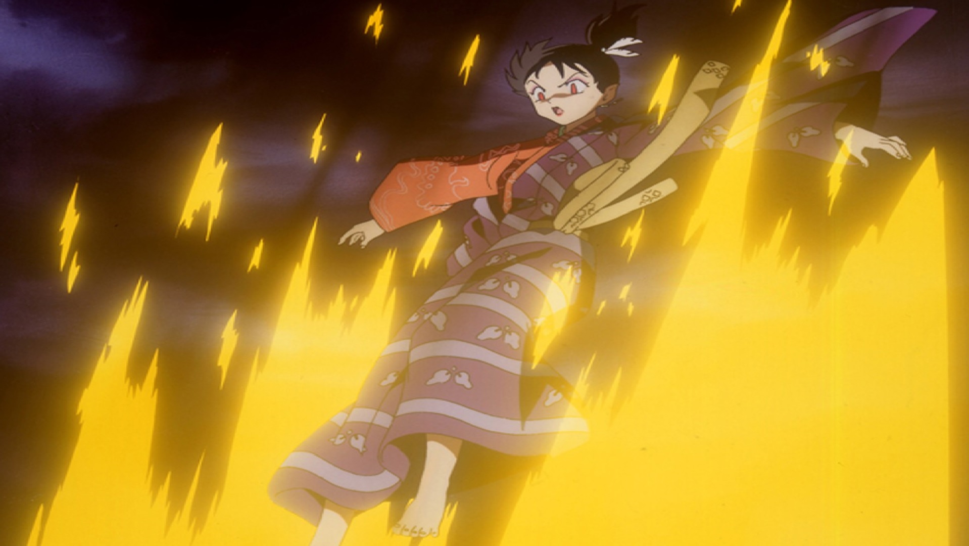 Inuyasha se transforma en un demonio cuando su vida está en peligro. Rápidamente descuenta a Gatenmaru, que se ha convertido en una polilla gigante. Ataca a los bandidos que escapan con sus garras, y no puede oír a Kagome tratando de detenerlo.