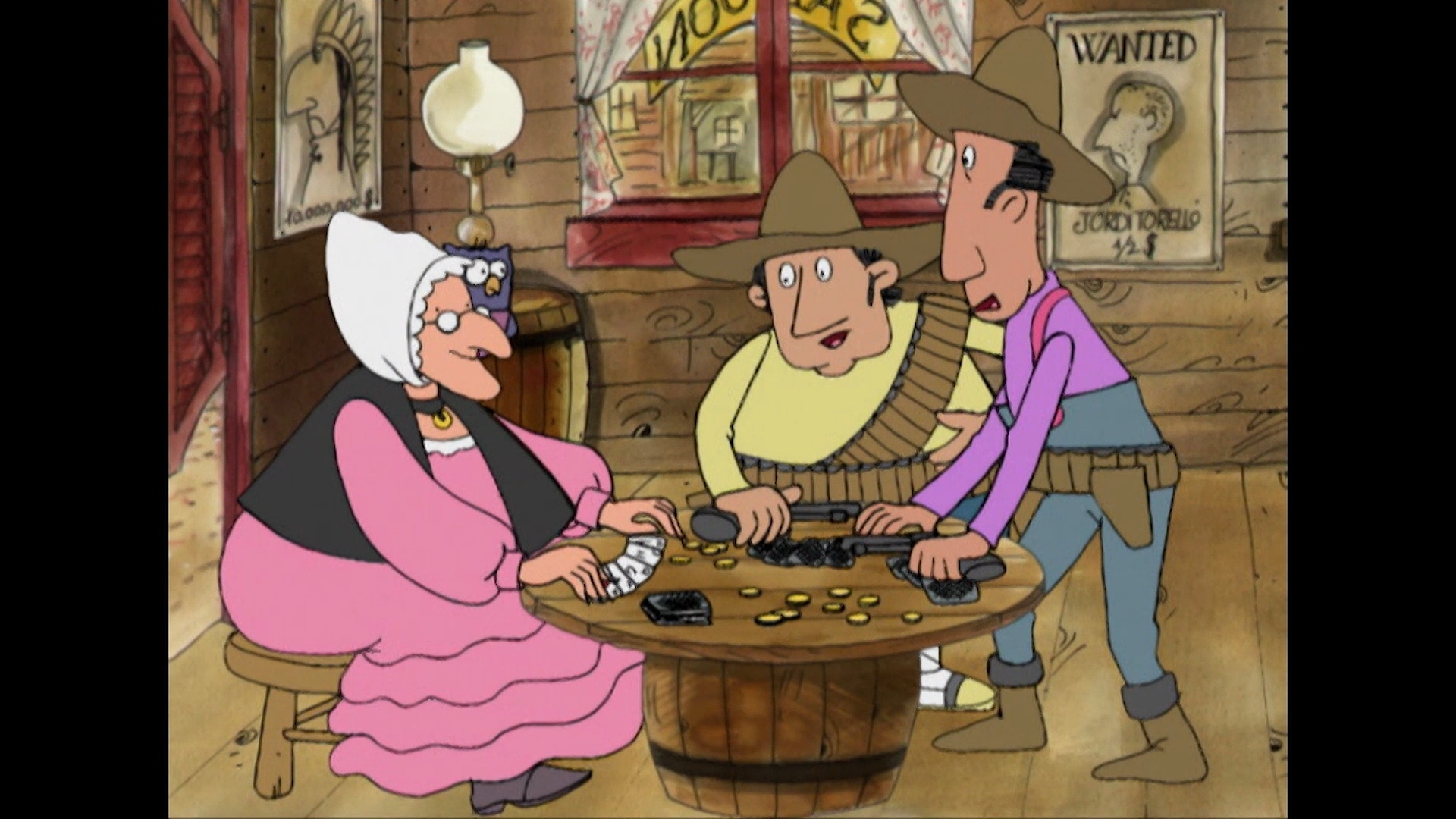 Las Tres Mellizas están viendo por la Tele una película del Oeste. Las niñas deciden jugar a indios y "cow-boys".