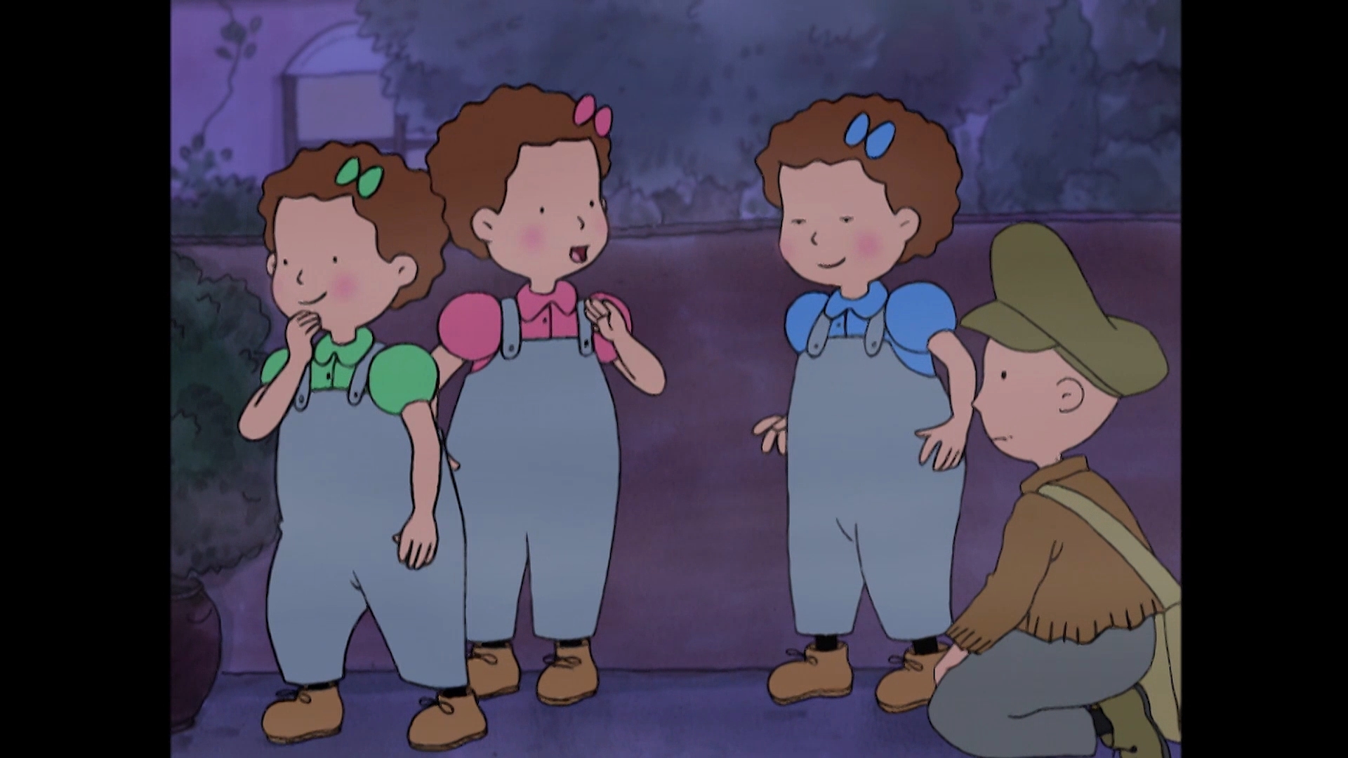 Las Tres Mellizas van de excursión al bosque, con el Colegio. Las niñas desobedecen a la maestra y se alejan persiguiendo a un ciervo.