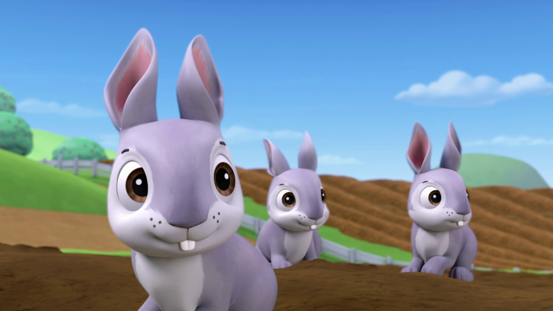 Las zanahorias de la granjera Yumi están desapareciendo y ella le pide ayuda a Ryder y los cachorros. / Katie está feliz porque uno de los cachorros participará en un concurso de adiestramiento canino.