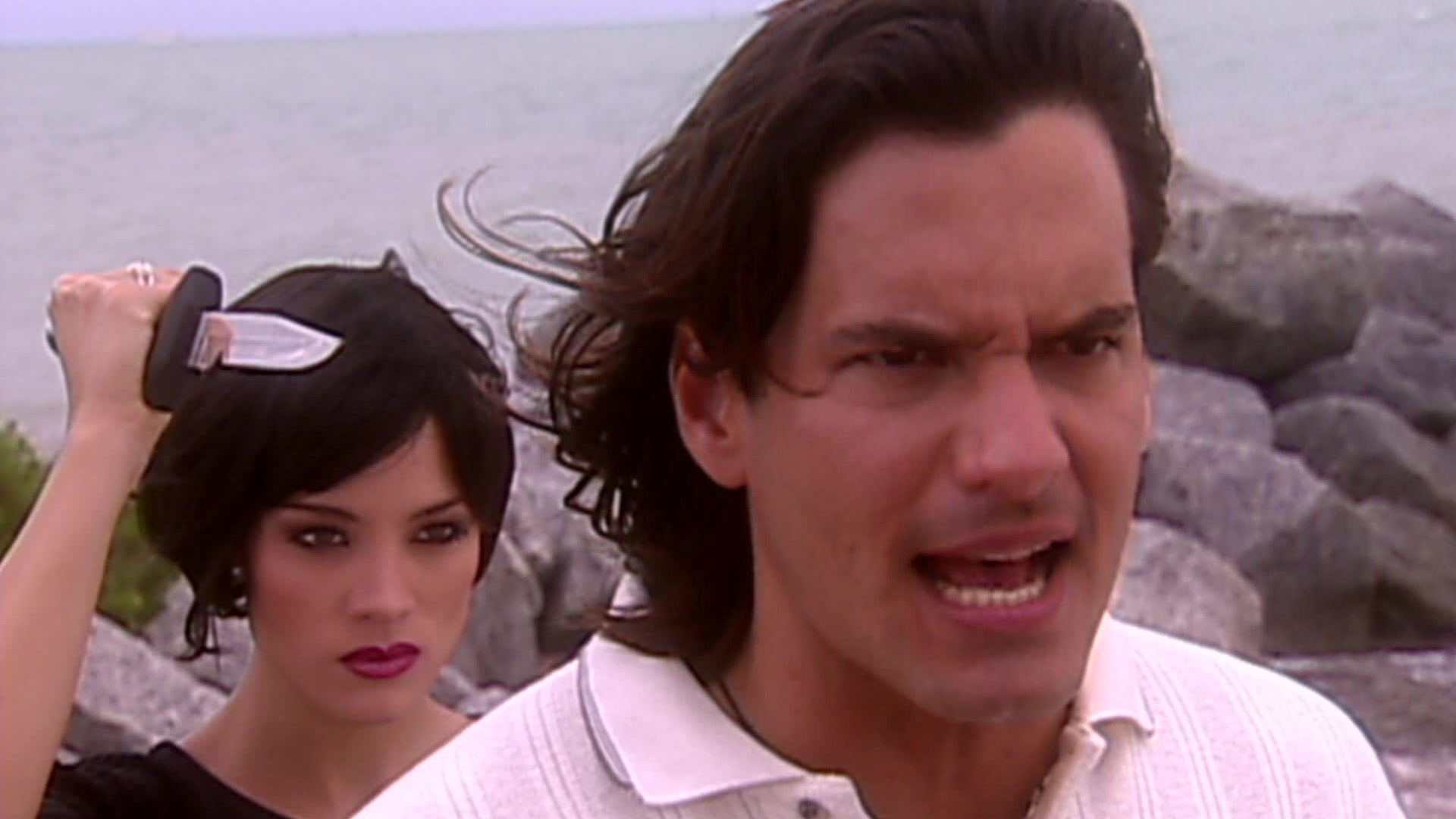 Eva se le aparece por la espalda a Luis Mario y lo ataca con un cuchillo. Él trata de defenderse y ruedan por el suelo, luego llega Luisana y Rosaura, quienes gritan para que Eva suelte a Luis Mario.