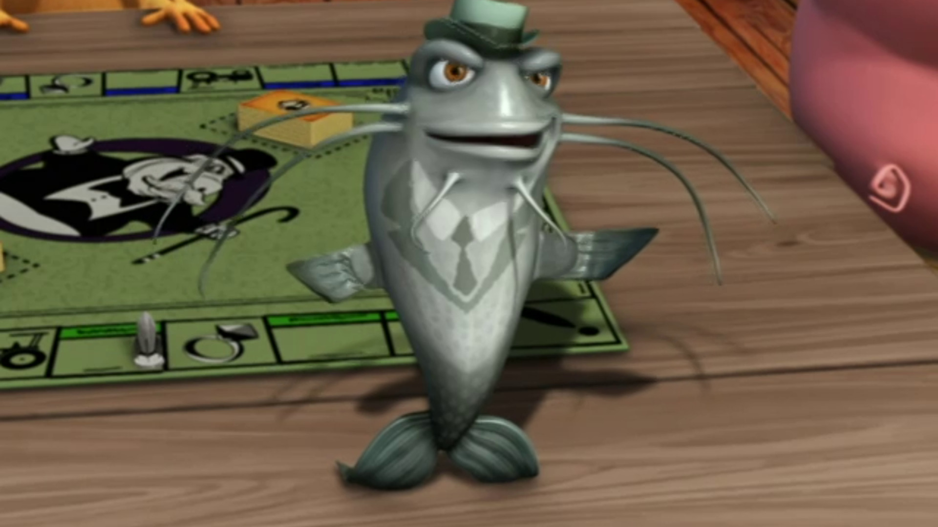 Pip tiene sus dudas respecto al viejo amigo de Otis, Eddie, el Chico Pez. / La Sra. Beady se esconde en el corral para escapar de su suegra.