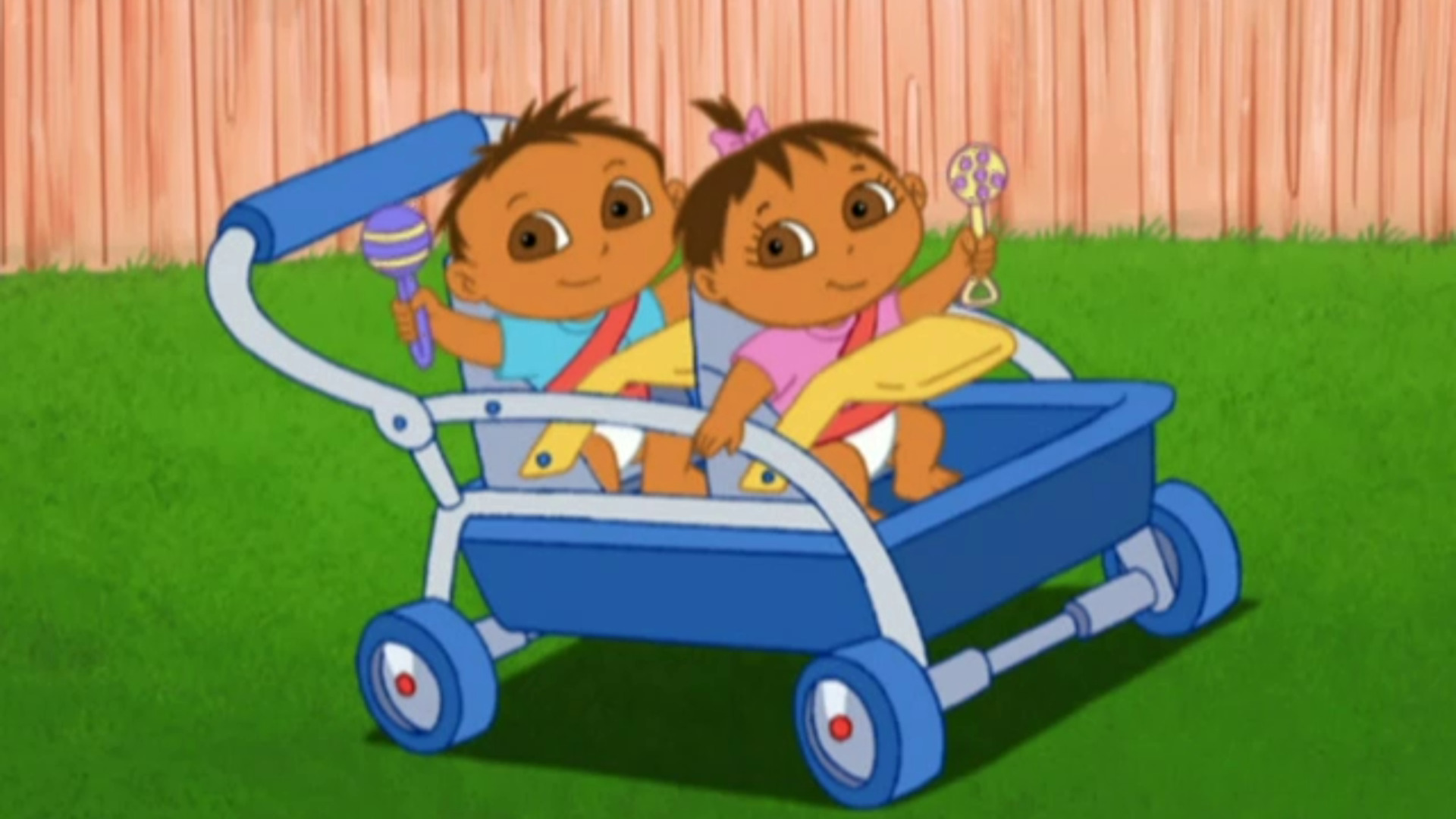 Es una linda mañana y Dora quiere saludar a sus hermanitos bebés. Cuando Dora llega a su habitación, ellos no estaban en sus cunas. Se habían subido al carrito y estaban en peligro.