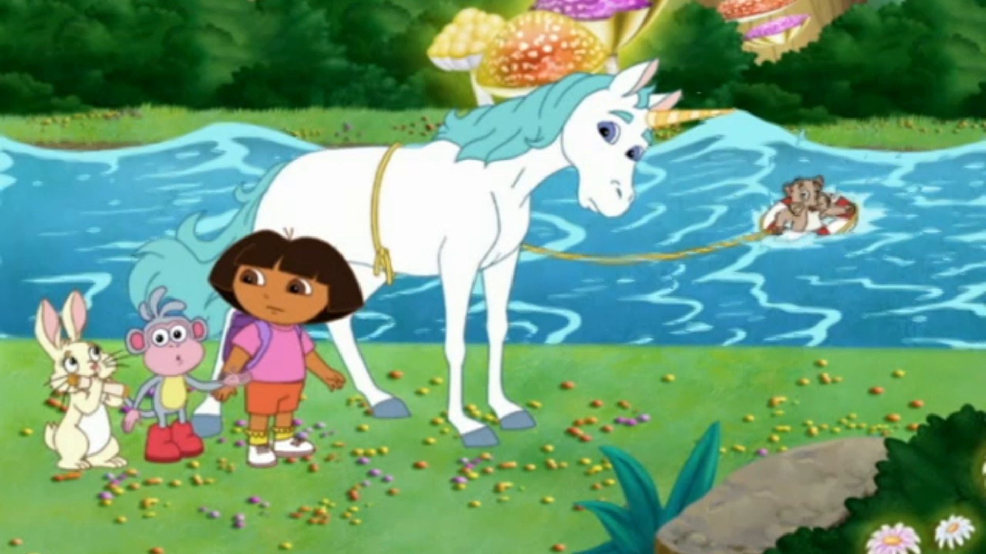 Unicornio ha sido escogido el nuevo Rey del Bosque Encantado, pero primero necesita la ayuda de Dora, de Botas y de ti para descubrir que es bueno, inteligente, valiente y fuerte como para hacer el trabajo.