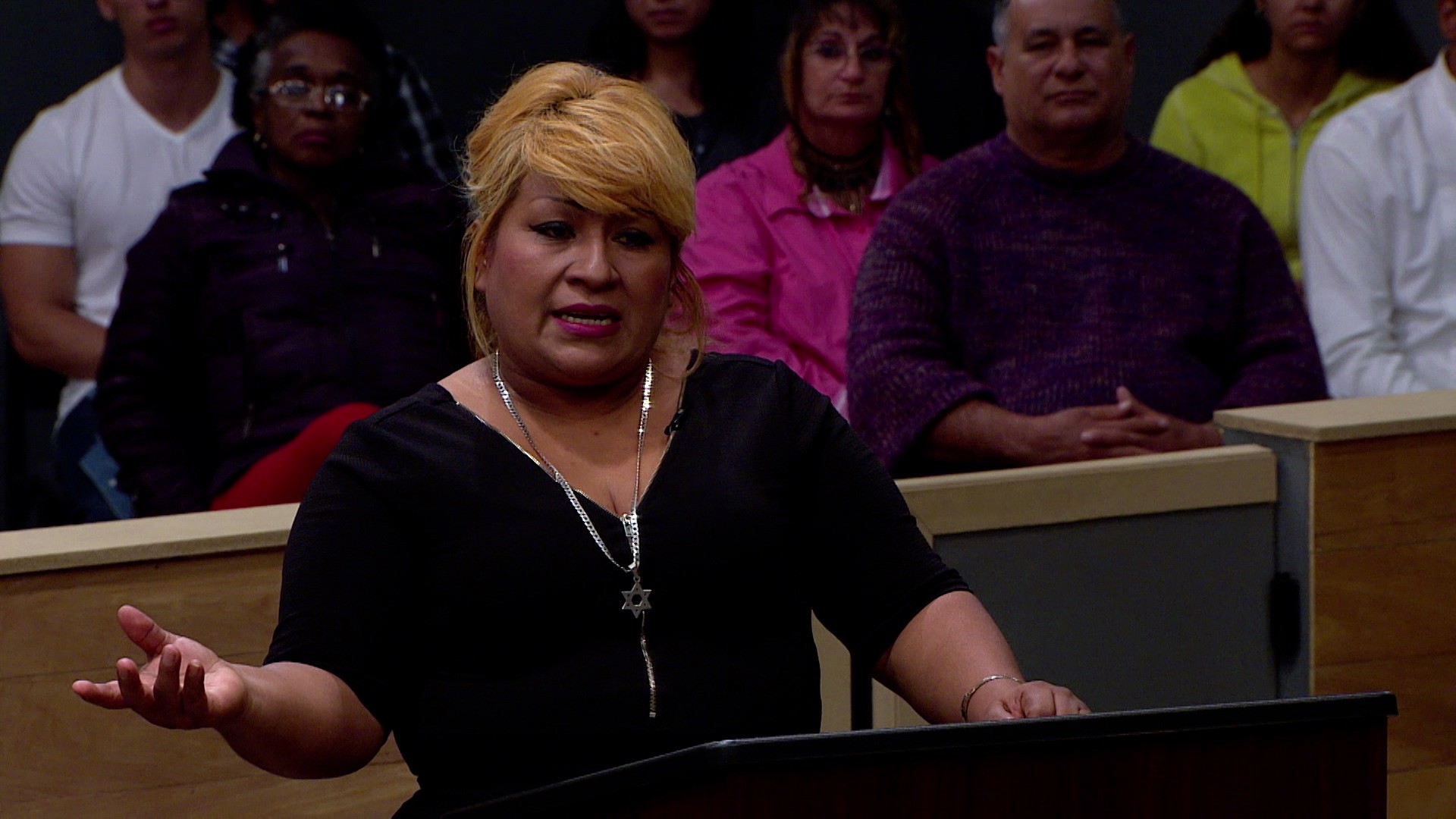 Justicia con Palmira Perez sigue la vida de Palmira Perez, una jueza comprometida. Cada episodio presenta casos legales intrigantes y complejos que debe resolver en su corte.