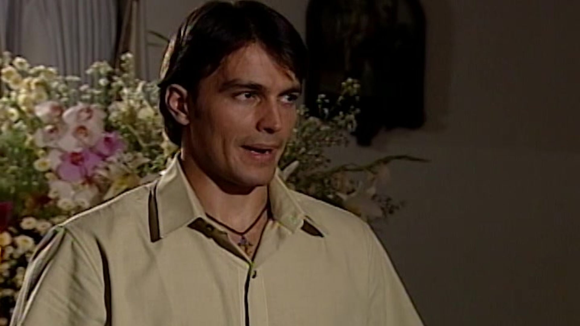 Violeta encuentra a Santiago sin camisa sacando unas cuentas y, sin que él se percate de su presencia, se queda en ropa interior y se le acerca a acariciarlo.