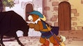 Cómo D’ARTACAN comienza a batirse en duelo contra los TRES MOSQUEPERROS y termina de su lado. D’ARTACAN ve al hombre con el bigote negro, el Conde ROCHEFORT y, mientras le persigue, comienza a atentar contra cada uno de los TRES MOSQUEPERROS.