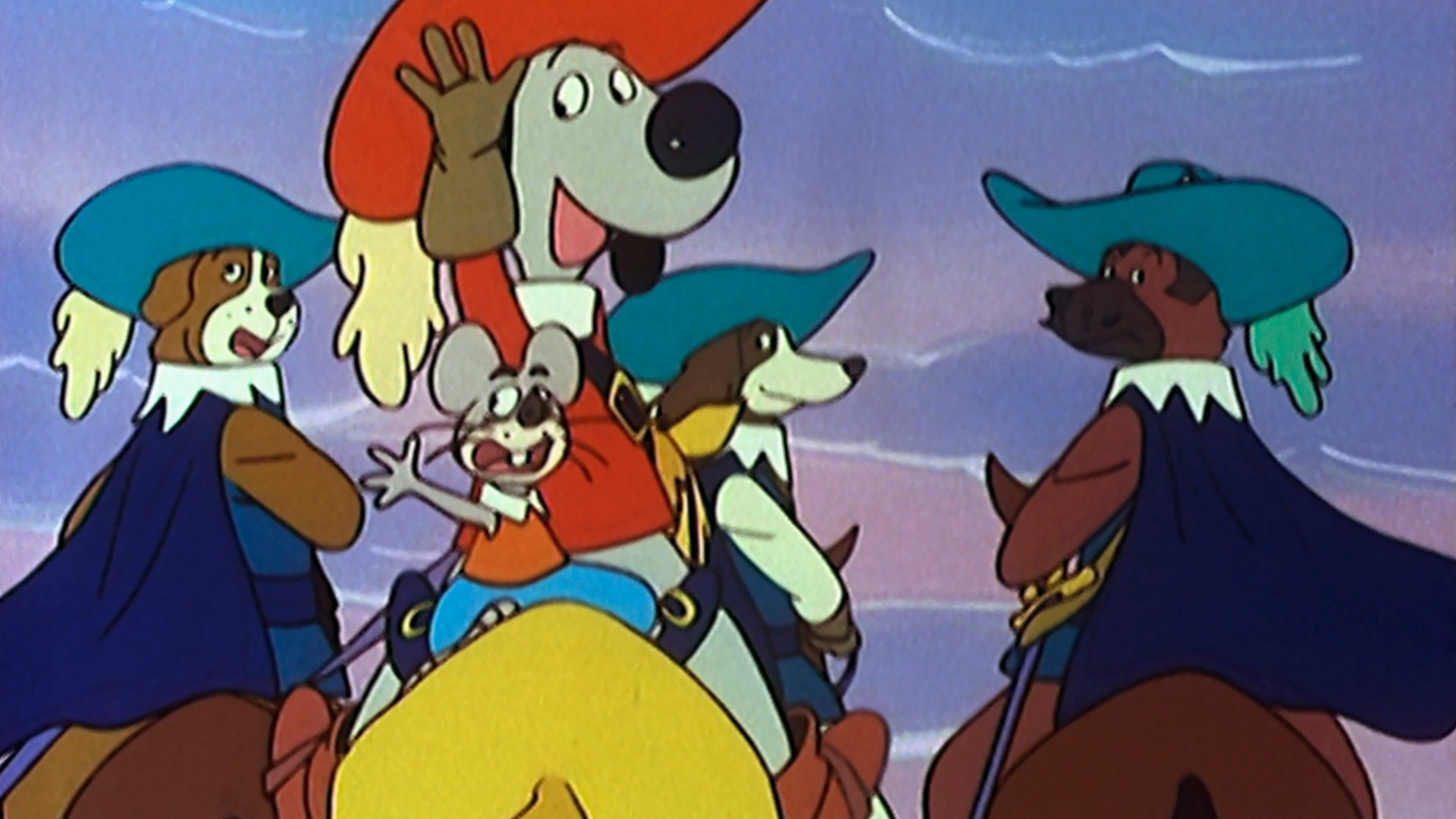 Cuenta la historia de joven D'Artacán, un chico impetuoso e inocente que se va a París para cumplir su sueño de convertirse en Mosqueperro. Allí conocerá un fiel amigo, el ratón Pom; se unirá a los famosos mosqueperros (Athos, Portos y Aramis).