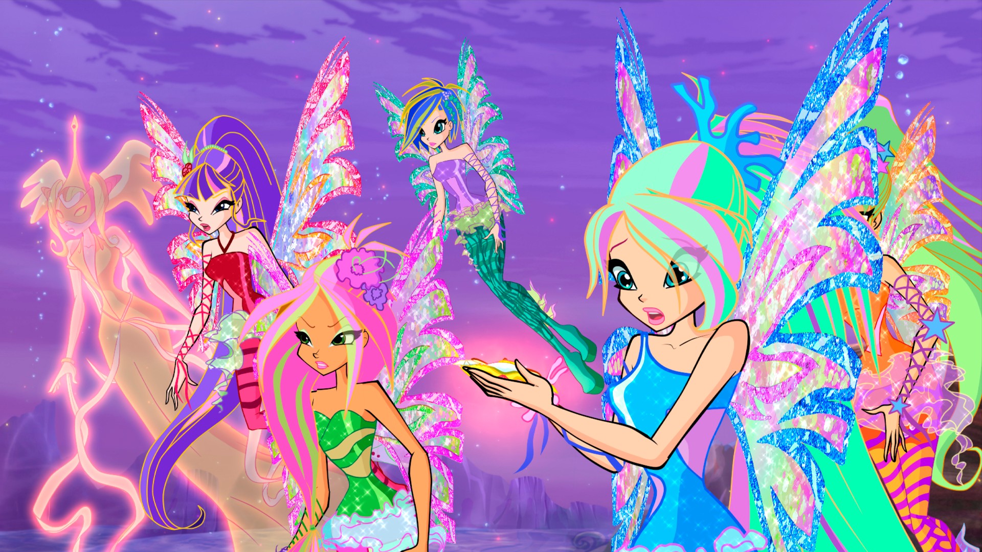 Bloom discute con Sky por culpa de Diaspro. Tritannus extrae el sello del Pilar del Equilibrio, lo que provoca maremotos. Darcy y Stormy controlan a las ballenas cantantes y amenazan a Melody. Las Winx intervienen, pero las ballenas atacan a las Winx.