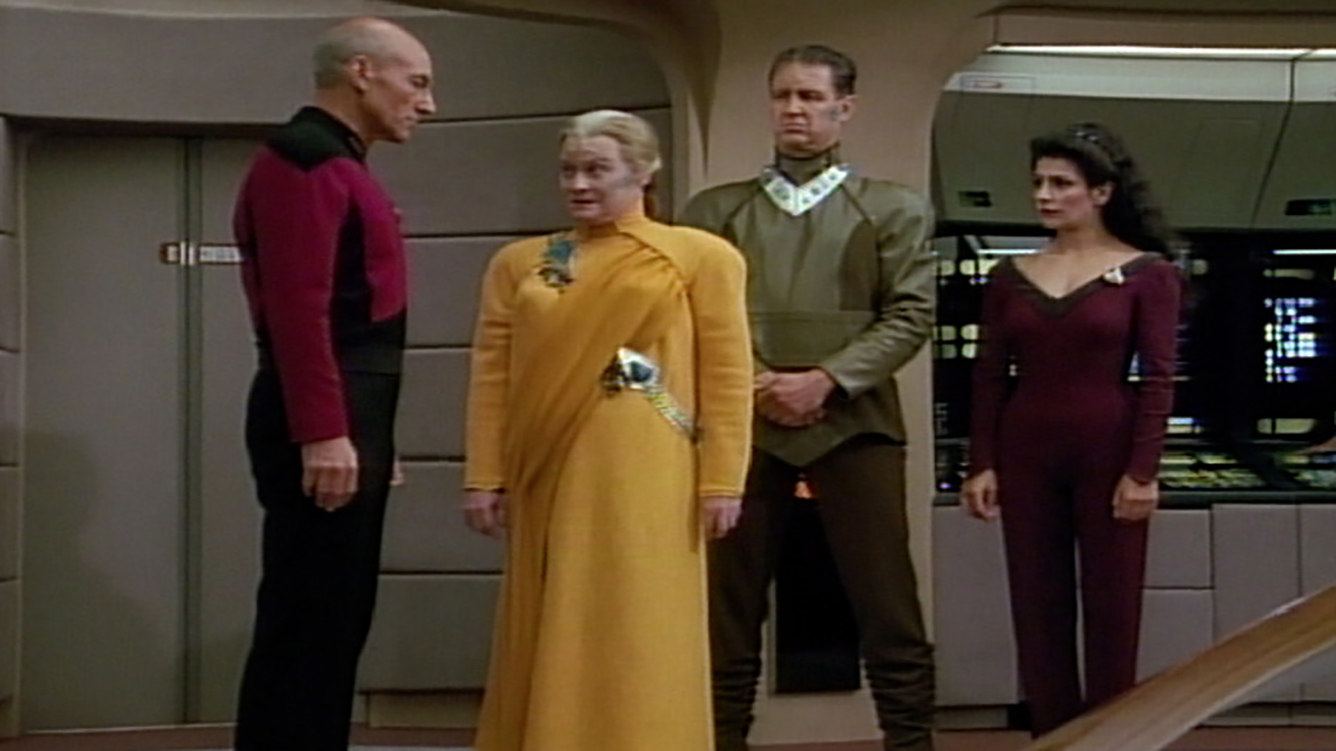 El capitán Picard es secuestrado estando en su propia habitación, y encerrado en una habitación junto a un Mizariano llamado Tholl, un Algoliano cadete de la Academia de la Flota Estelar llamado Haro y un Chalnoth llamado Esoqq.
