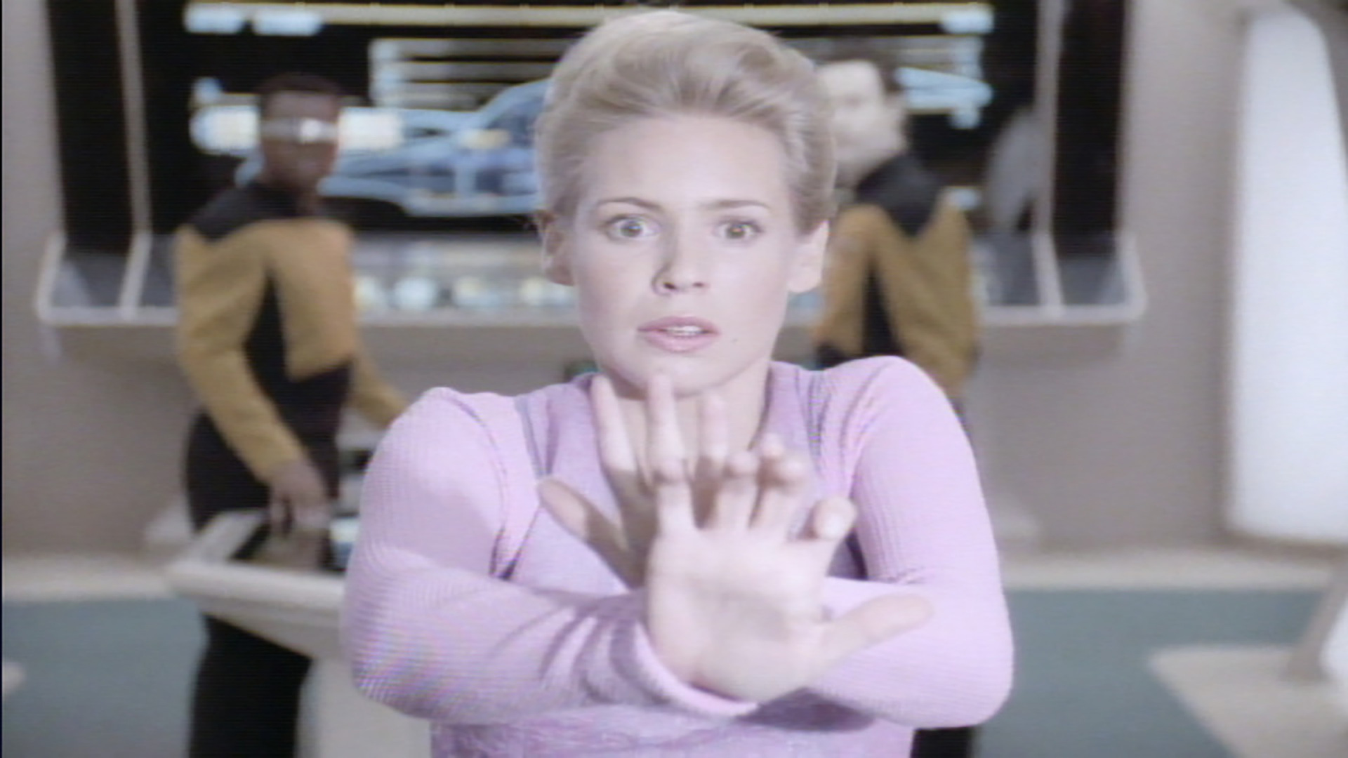 Aparentemente, como resultado de unos experimentos científicos realizados por Geordi, muchos tripulantes y pasajeros del Enterprise sufren extraños dolores de cabeza y otros síntomas de debilitamiento.