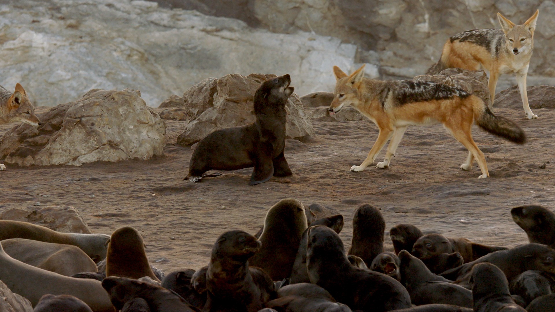 Estamos apenas comenzando a comprender cómo cazan los mamíferos marinos. Sabemos que desarrollan métodos sorprendentemente sofisticados, que dejan asombrados a los científicos con cada nuevo descubrimiento. ¿Cómo es que los animales de una misma especie inventan métodos tan asombrosamente únicos para encontrar y capturar a sus presas? Utilizando la tecnología más avanzada en cámaras —drones, cámaras de alta velocidad y cámaras submarinas—, los científicos explorarán y explicarán la gran variedad de trucos y tácticas usados por la vida marina como nunca antes. Desde la ballena jorobada en la Bahía de los Glaciares en Alaska atrapando cardúmenes de sardinas, hasta las orcas patagónicas que llegan a la orilla para capturar crías de lobos marinos, y los hienas de Namibia que se infiltran en colonias de lobos marinos cuando cae la noche, esta serie documental de alta calidad científica y naturalista nos ofrece perspectivas inéditas del ingenio detrás de estos grandes cazadores del mar profundo.