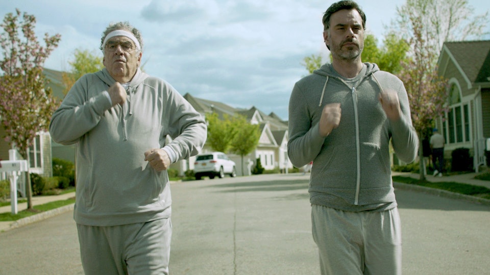 Humor Me er en varm far-sønn-komedie om en forfatter med skrivesperre som tvinges til å flytte inn sammen med sine vitsebesatte far i et pensjonistsamfunn i New Jersey. Der lærer han, som faren sier, at ”livet skjer, enten du smiler eller ei”.