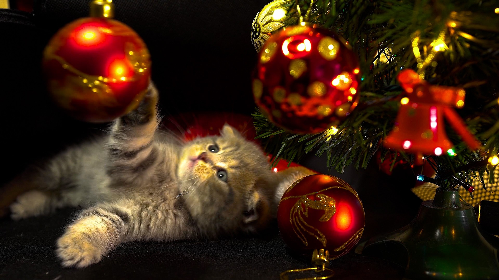 Skab julestemning med søde katte i hyggelige, pyntede stuer – killinger leger, åbner gaver og ser på sne og fugle.