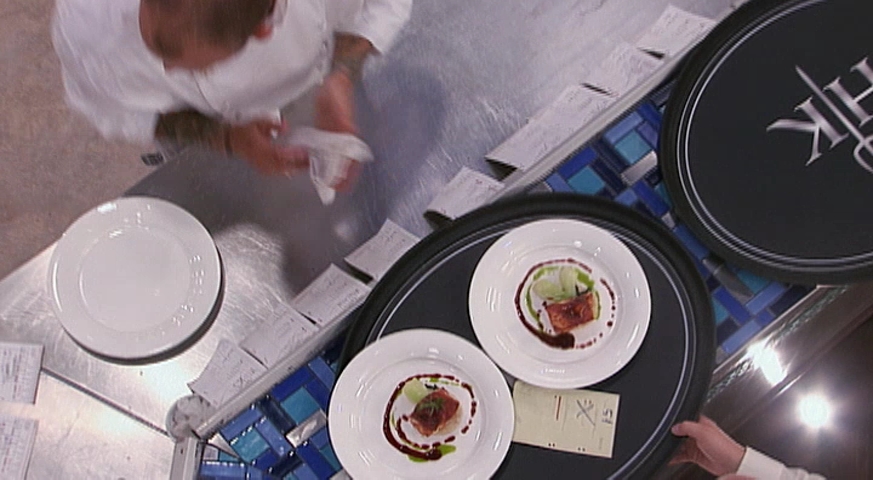 Chef Ramsay asks the teams to create their own menus for a dinner service that features Ian Ziering ("Beverly Hills, 90210") and Nikki SooHoo ("The Lovely Bones") as special guests.