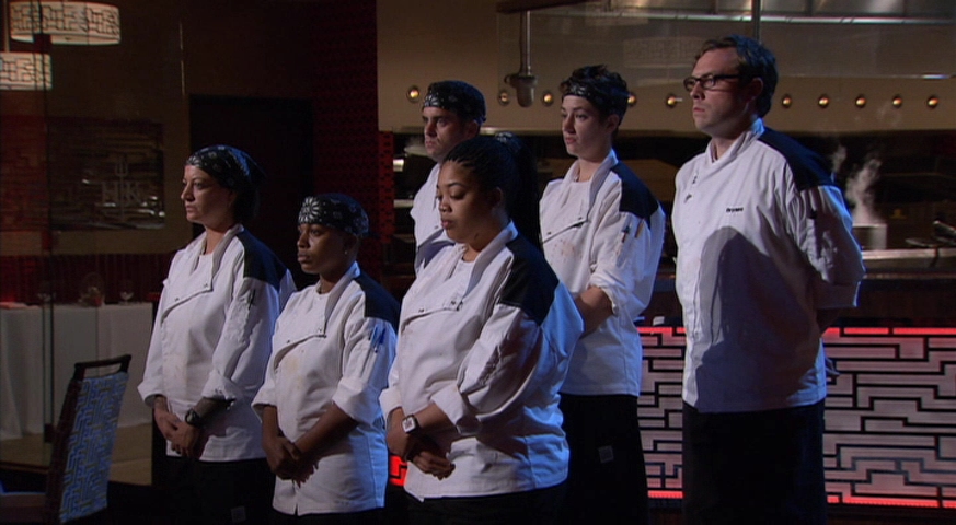 The remaining contestants take on steak. Ramsay, along with Omaha Steaks owners Bruce and Todd Simon, judge the meals based on appearance and eat them only if they look favorable.