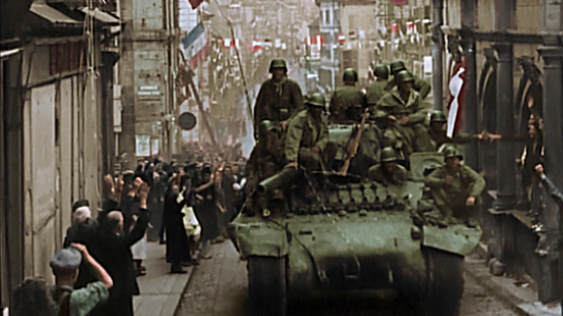 World War II In HD Colour uses rare footage and advanced colorization to present the war in new detail. Narrated by Robert Powell, the series combines satellite mapping, graphics, and new released documents for deeper insights into strategies and battles.