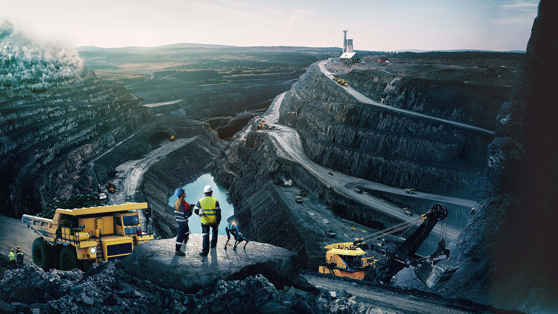 Feltmekaniker Marcus er i Narvik, hvor flere gravemaskiner må løftes ut av en silo som er 70 meter dyp. Stefan og Eva jobber i Aitiks autonome område, hvor de enorme lastebilene kjører selv.
