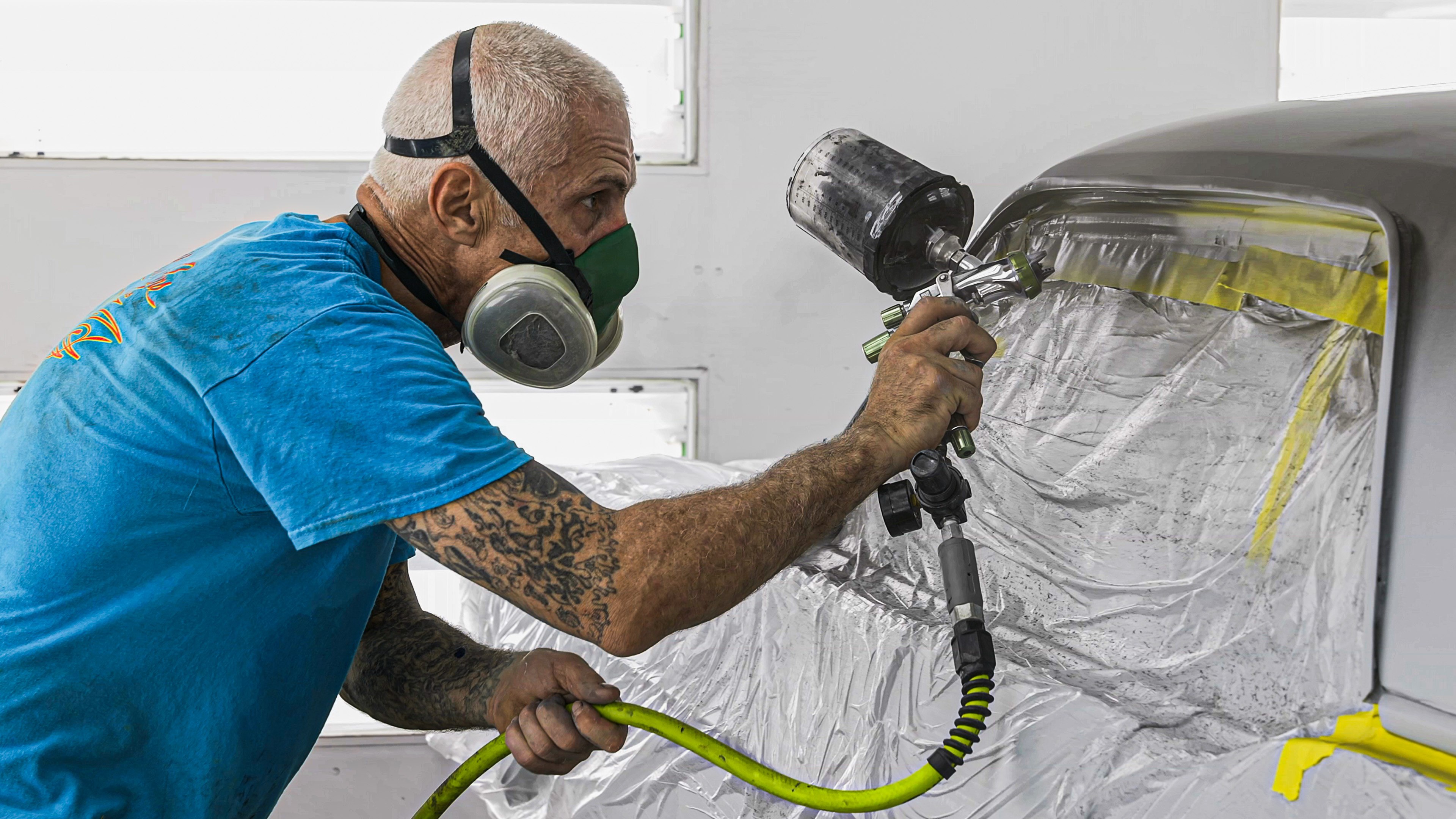 The 1966 Mustang that was purchased at Mechum Auctions a year ago needs a tune up. The team is in the paint booth working on another 1966 mustang.