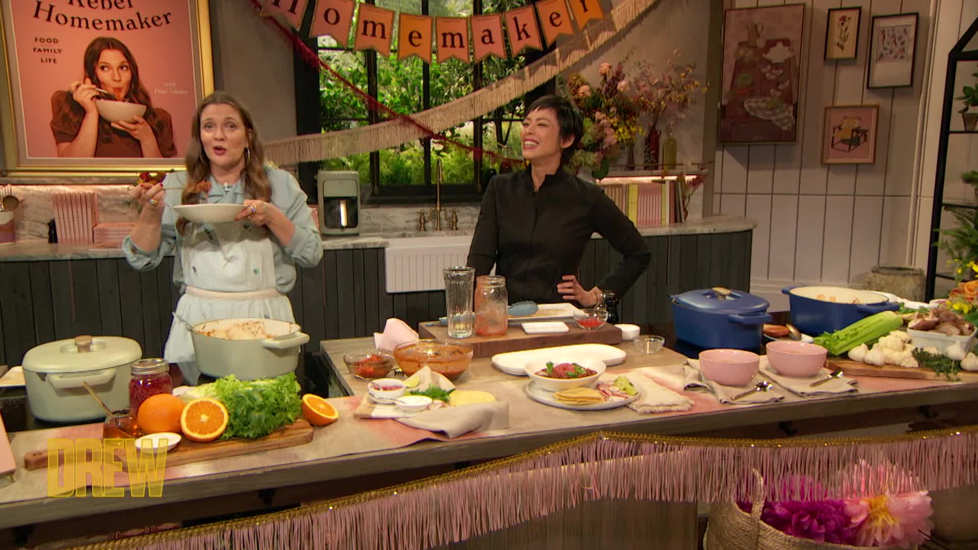 Drew and Chef Pilar Valdes celebrate the official release of their cookbook, "Rebel Homemaker," by sharing three tasty recipes including Shredded Beef with Pickled Red Onions, Pairs with Everything Salad and Ode To Campbell's Cream of Mushroom Soup.