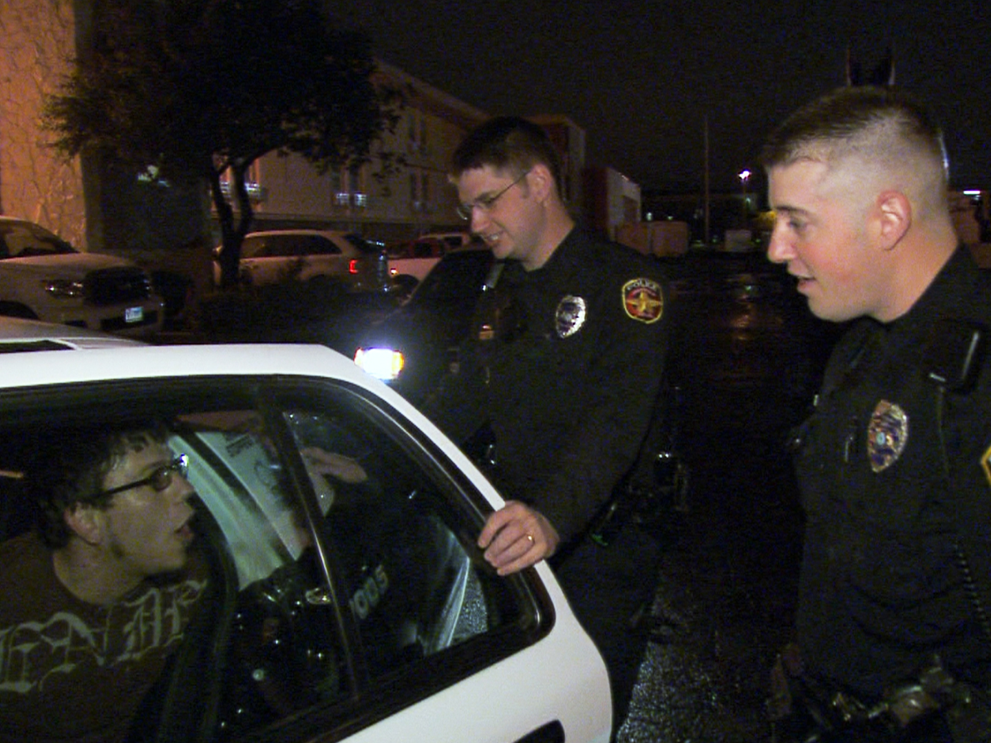 A family with kids is taken on a high speed car chase. An intoxicated suspect tries to jump a fence while protesting that he's not trying to run away.