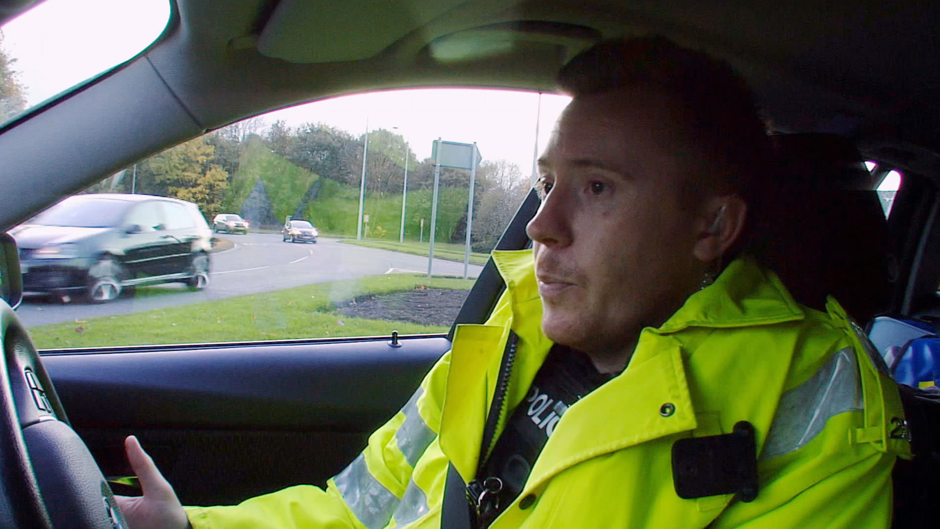 Presenters Rick Edwards and Ortis Delay are out with the police interceptors.