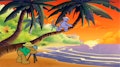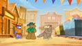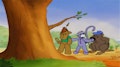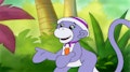 You have to get wet to go swimming. / Socks has to escape the Gamu monkeys. / The gang digs for lost treasure. / Lionel wants to join the circus.
