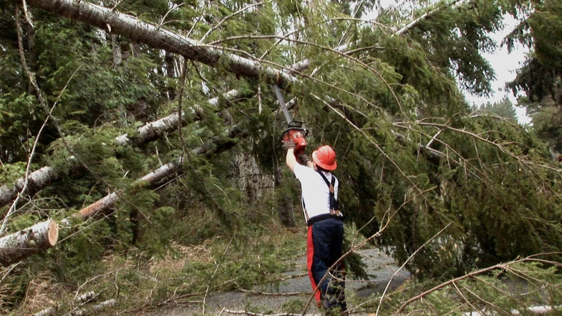 The town of Vernonia is declared a disaster area as the worst storm in 25 years pounds the Oregon coast. Members of Phil and Stump Branch are forced to flee.