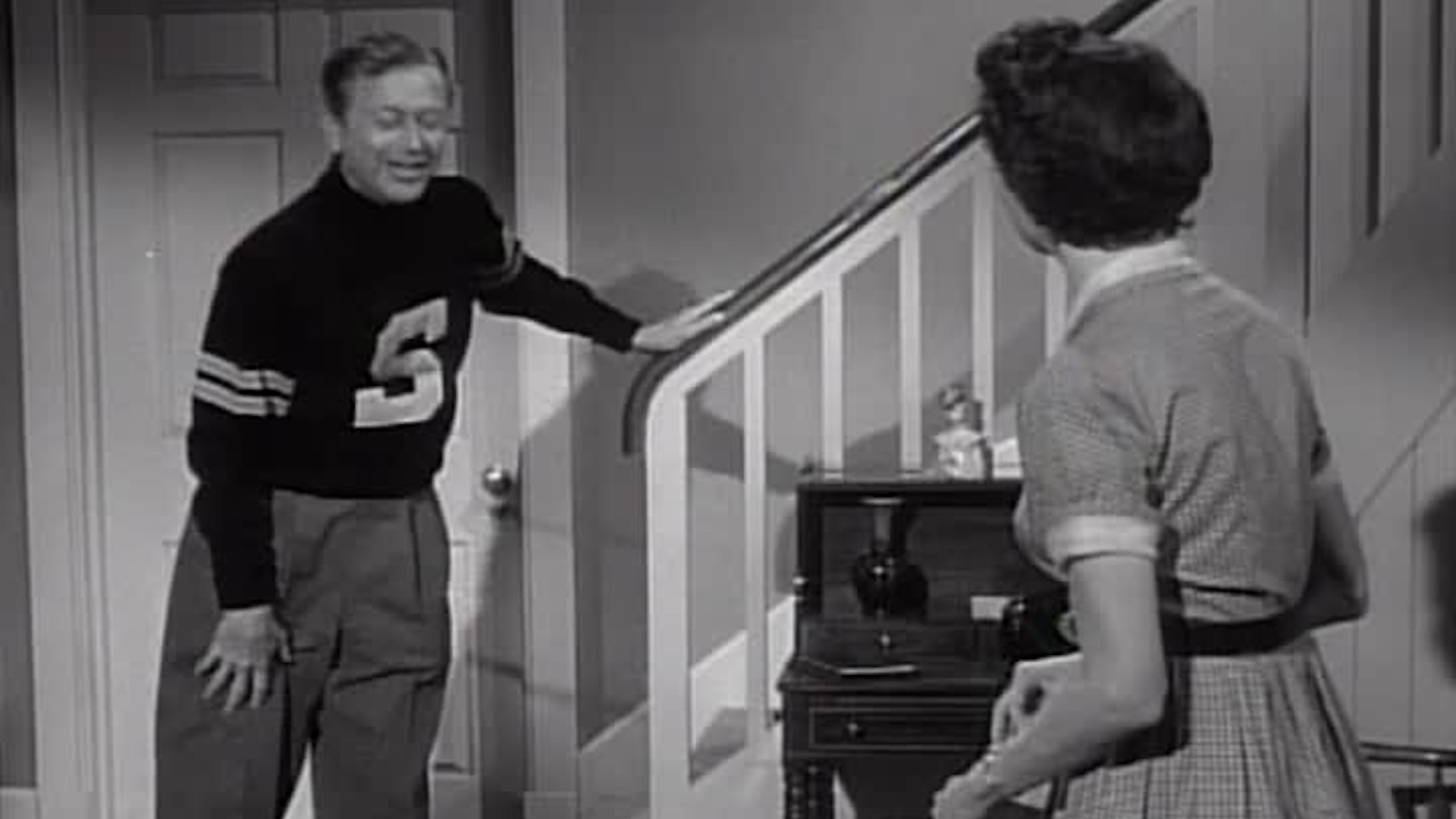 The customers on Bud's paper route have been complaining about him to his boss. When Mr. Collins tells Jim about it, Jim assures him that Bud will fulfill his duties if he gives him another chance.
