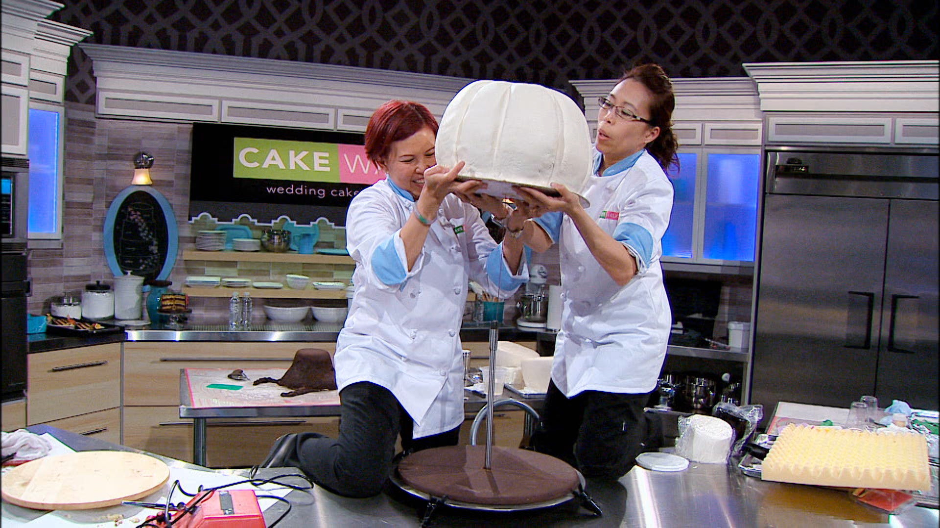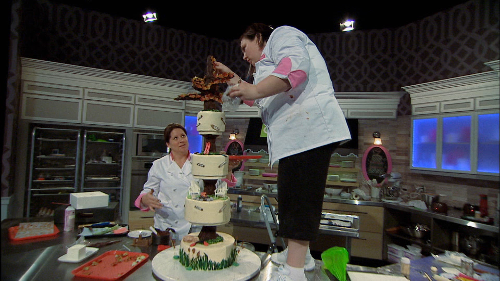 Three pastry chefs create elaborate cakes for a wedding with an "Old Hollywood" theme.