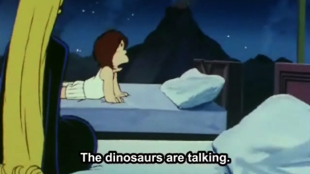 On the Dinosaur Planet, a dinosaur named Tiny asks Tetsuro to let him board the 999. Of course, the 999 isn't built for dinosaur-sized passengers, no matter how tiny he may be.