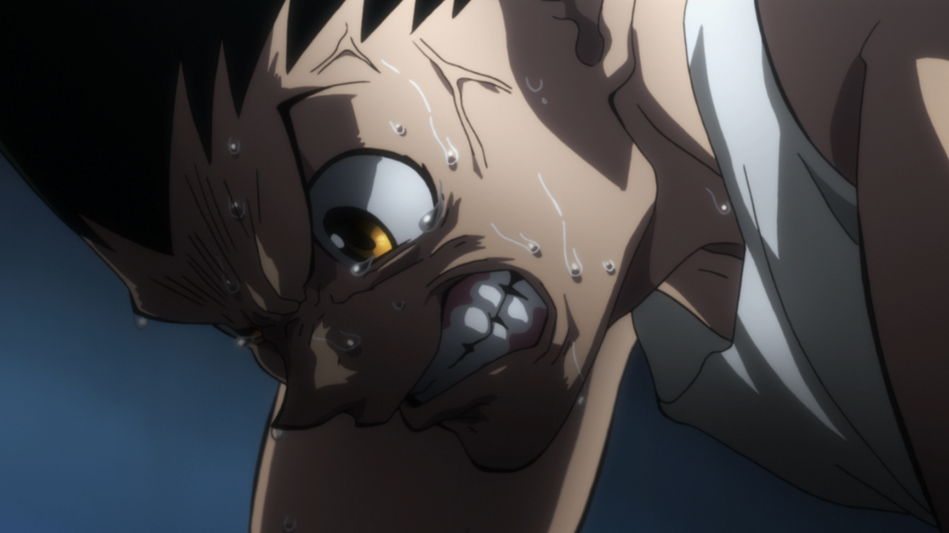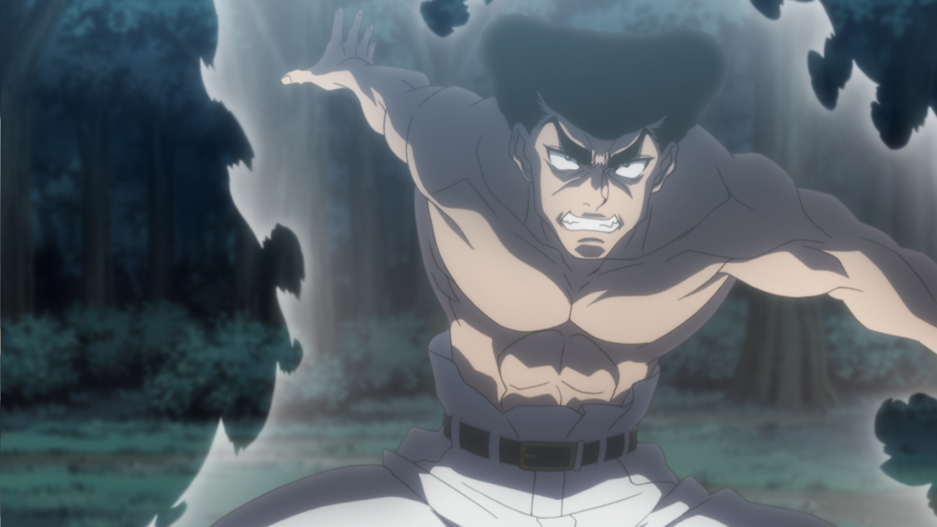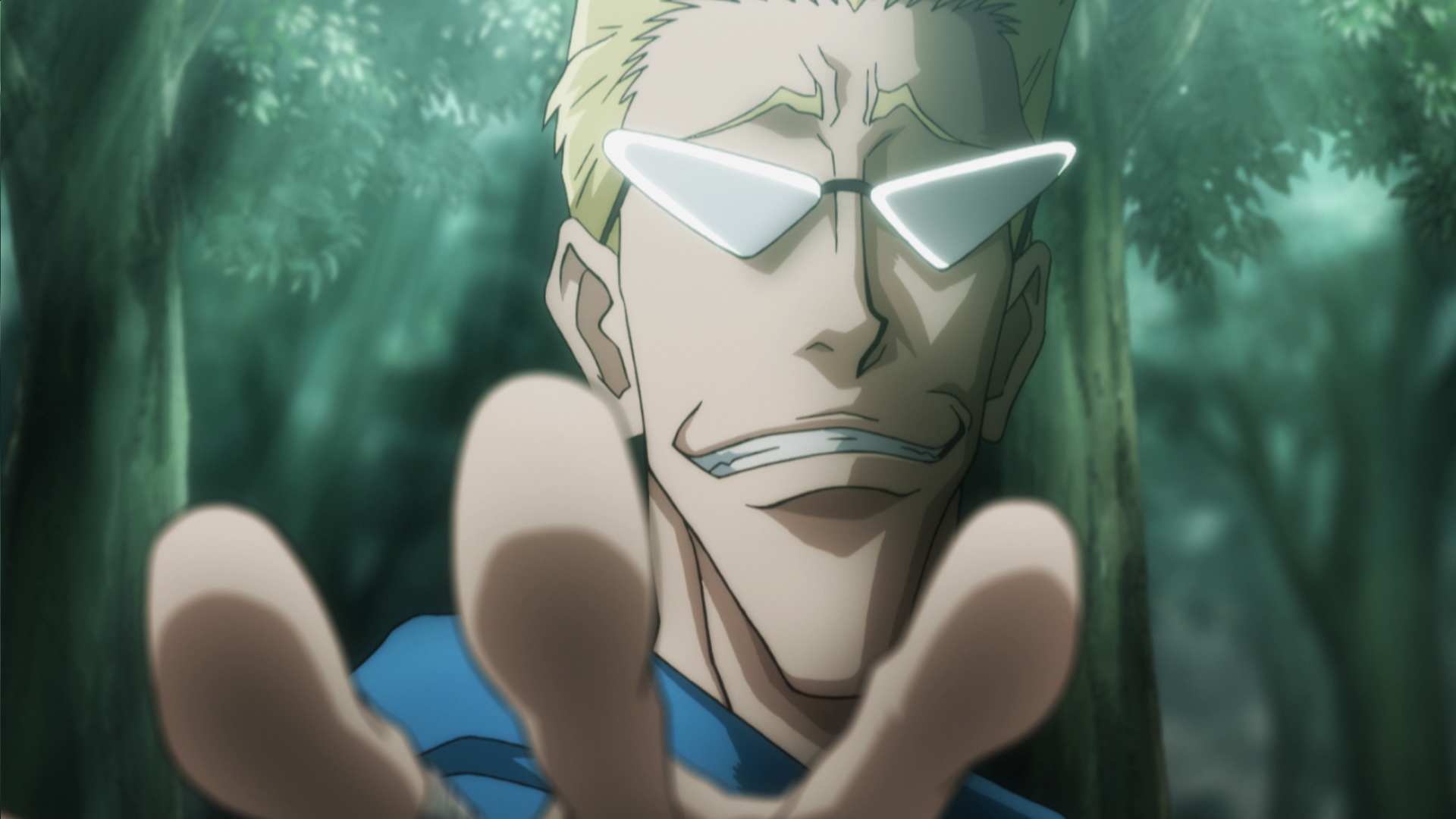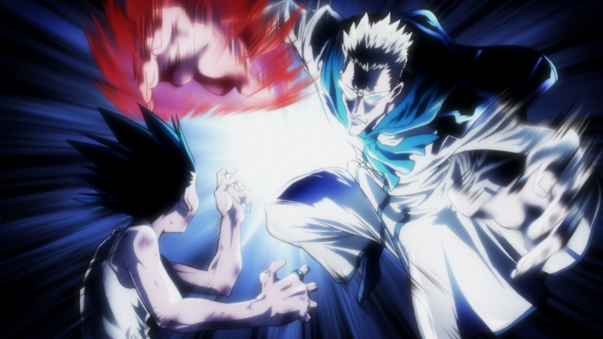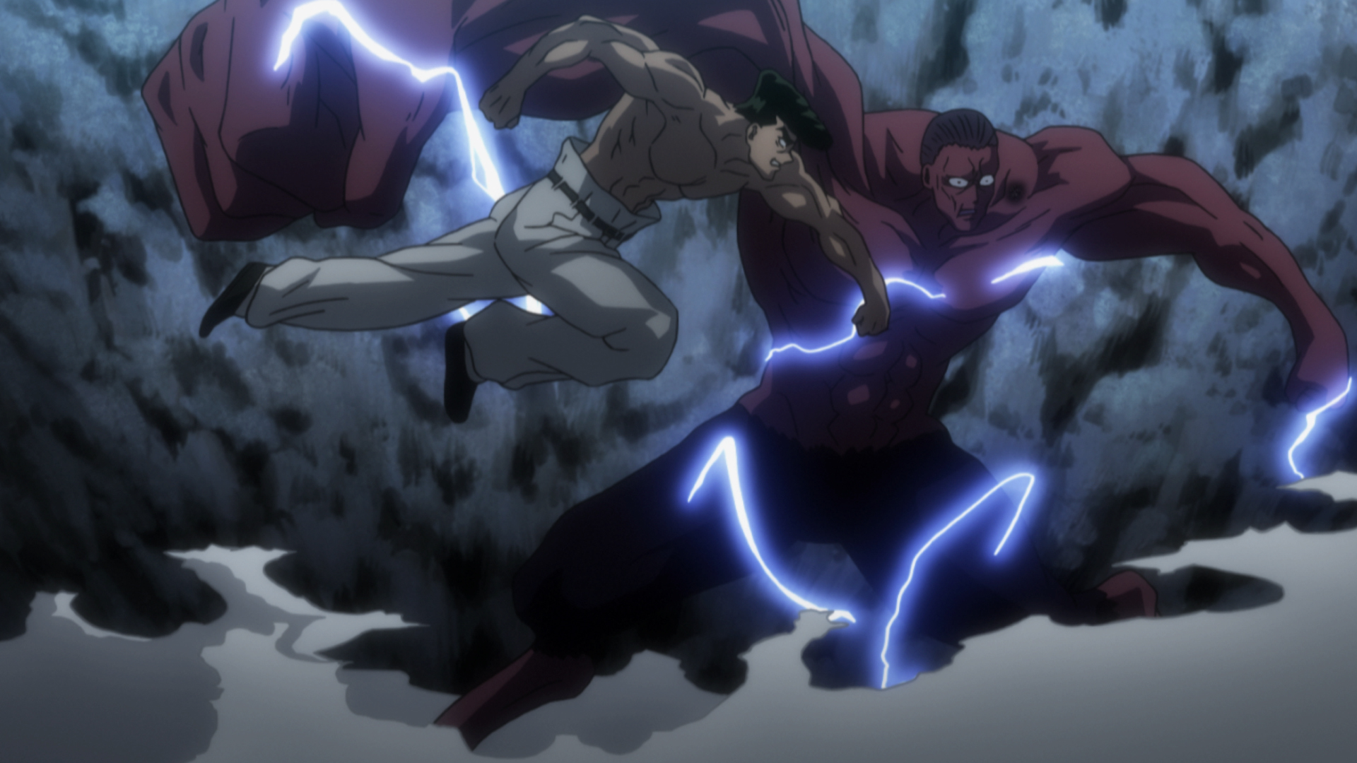 A pair of Chimera Ants appears and hunts Gon under the cover of night, overwhelming him with their attacks. Feeling that things are at a standstill, he gathers up his Nen and prepares to throw a punch.
