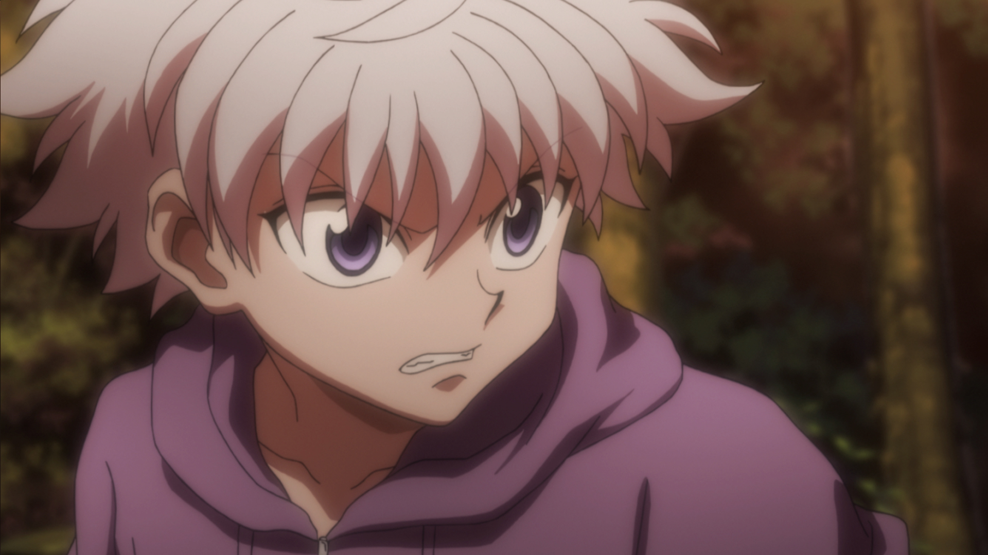 While Gon is on his date with Palm, Killua encounters Rammot in the forest. Just when their battle is about to begin, Killua hears his brother's voice in his head, telling him to run away.
