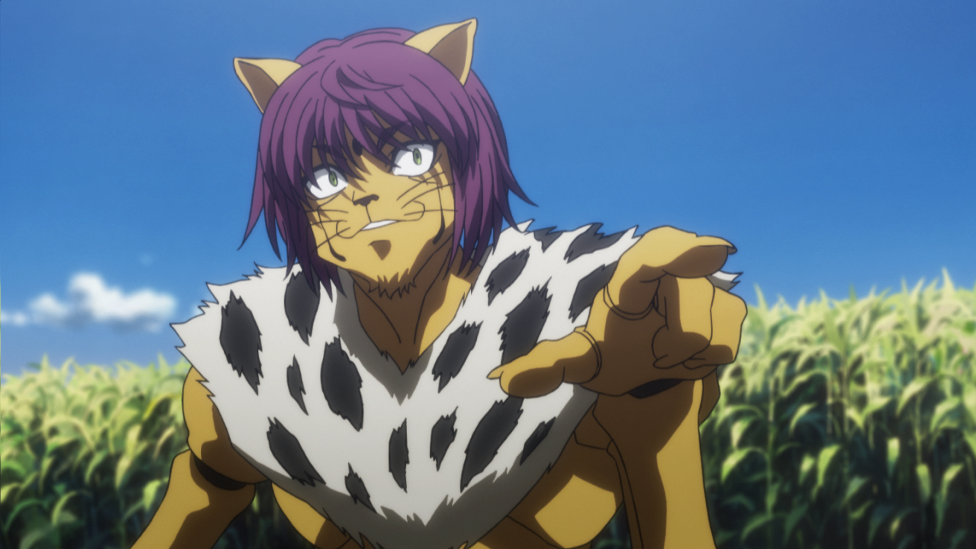Knuckle and Shoot are lying in wait for Cheetu. But just as Cheetu is about to approach them, he suddenly changes direction and disappears. Meanwhile, Killua and Gon sense that someone is following them again.