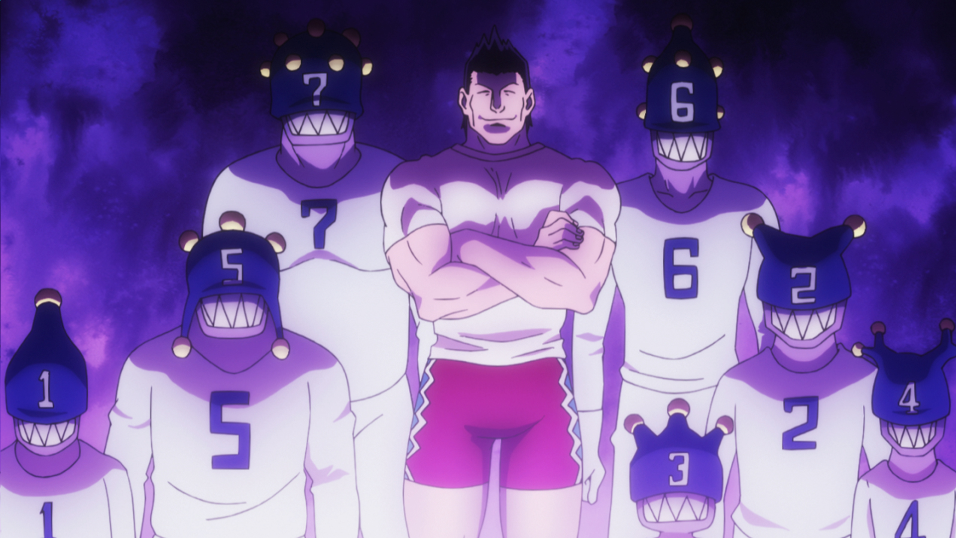 Hisoka appears before Gotoh and the other butlers who are trying to protect Killua.
