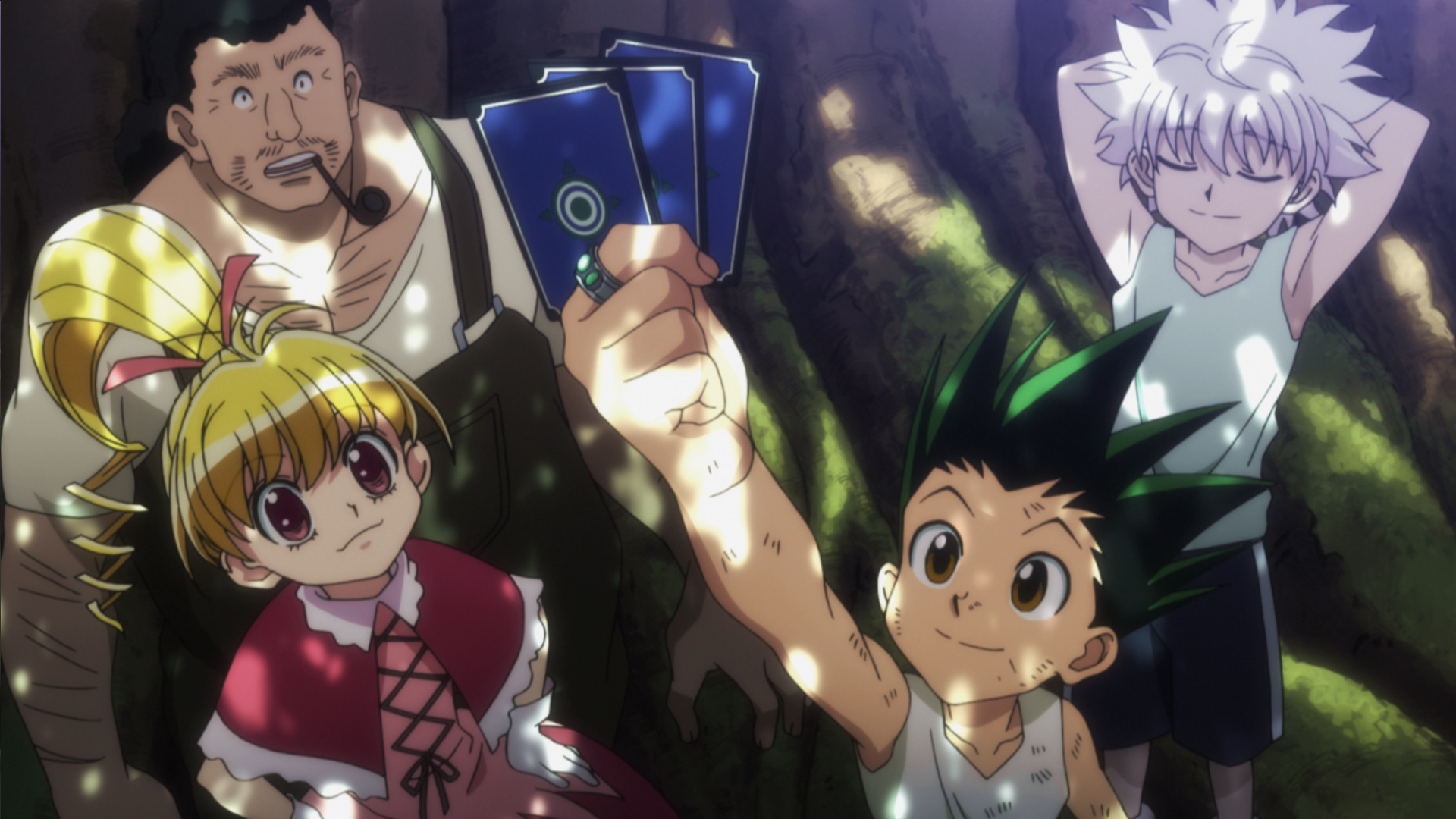 Gon and his friends finally defeat Genthru and collect 99 trading cards.