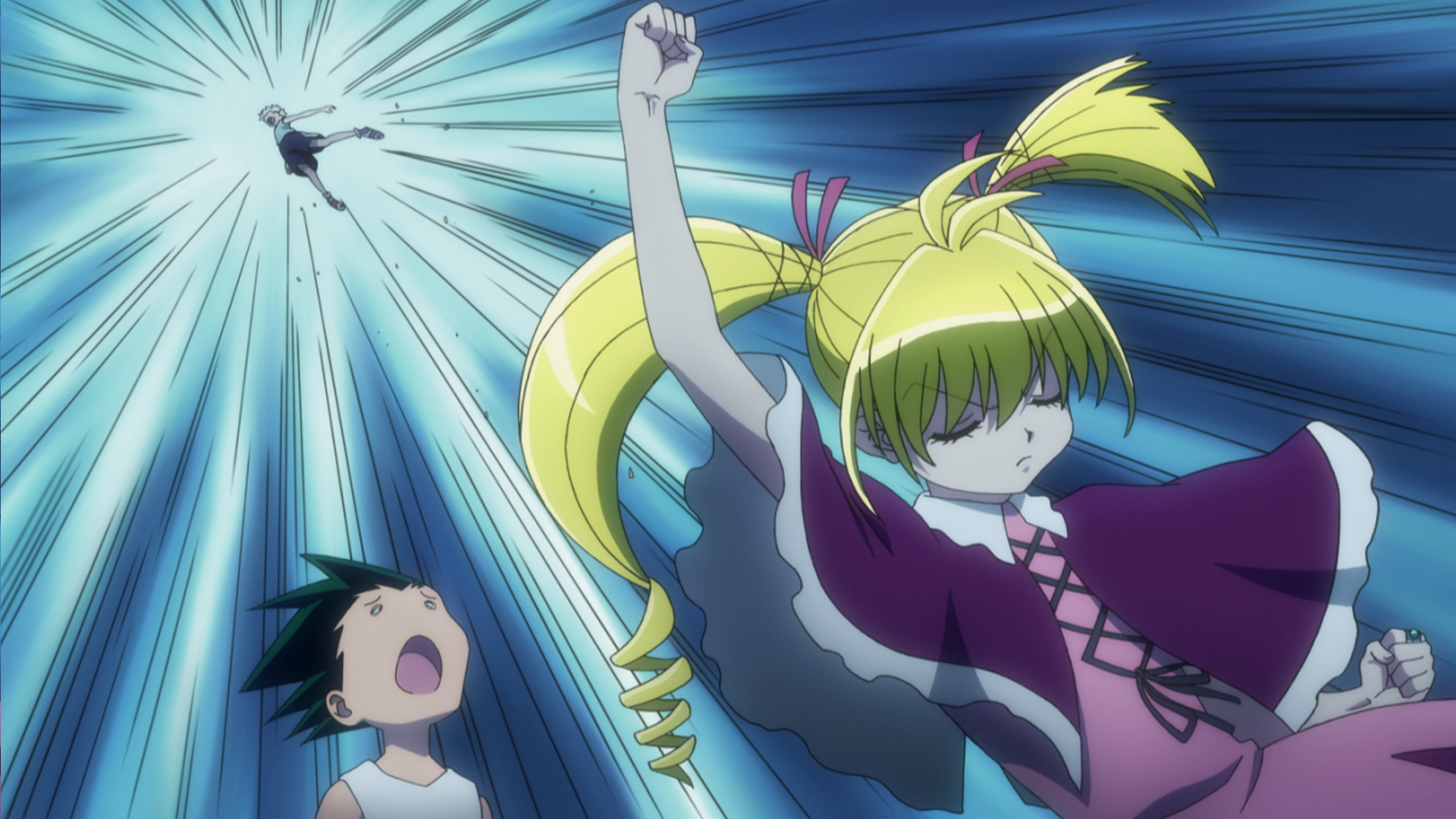 Killua faces Shoot while Gon takes on Knuckle.