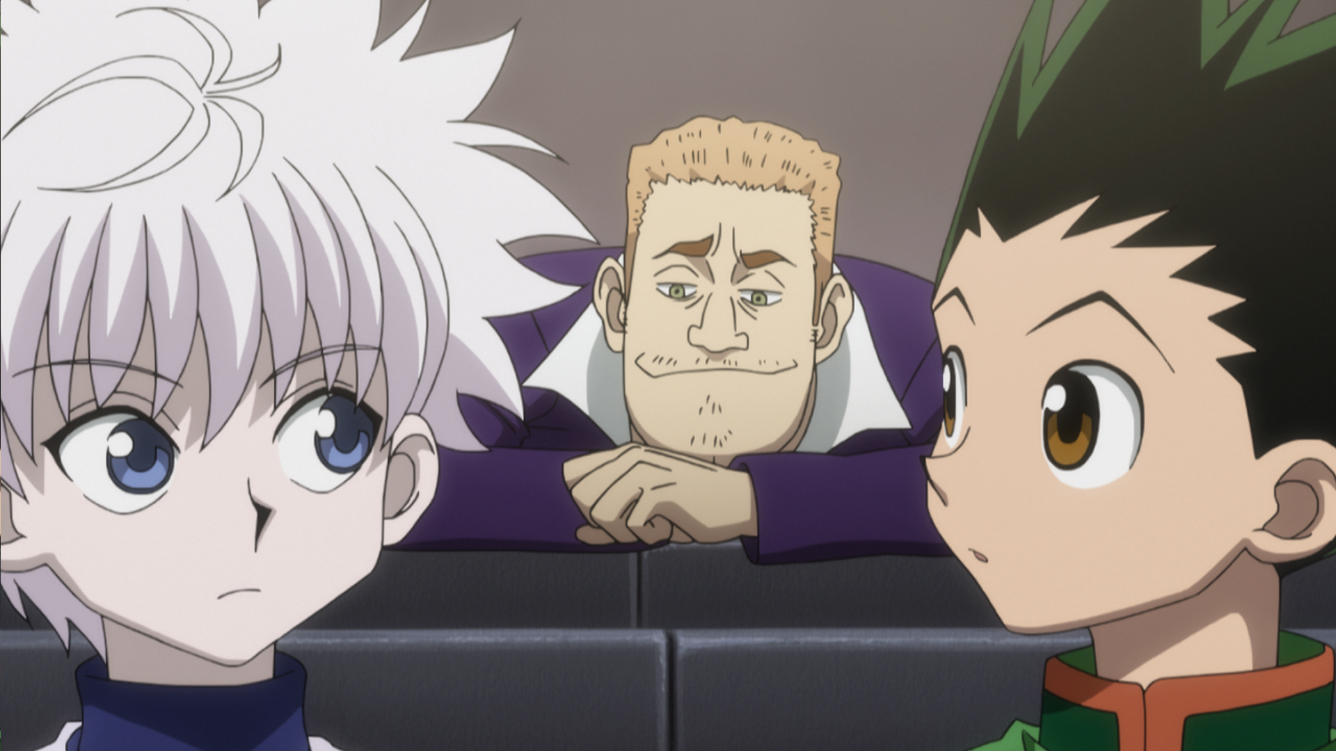 Gon recovers and sees his father, Ging for the first time.