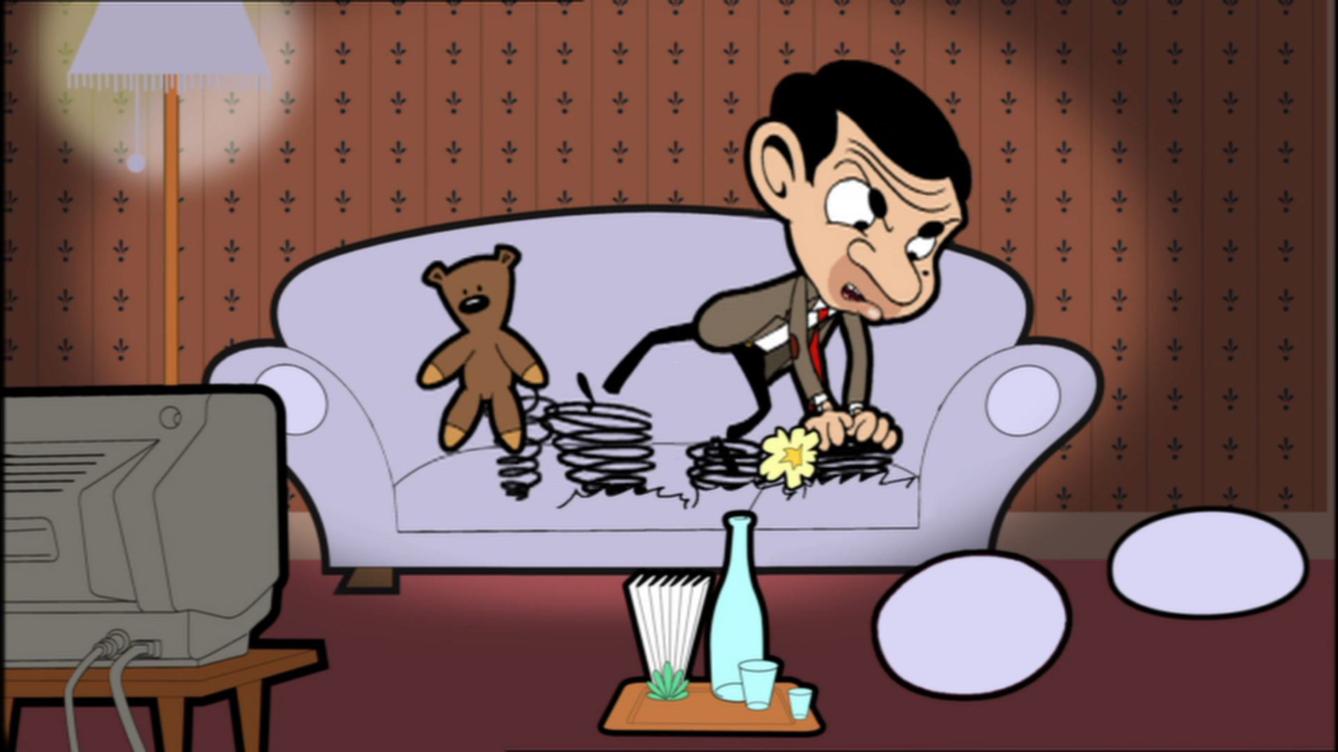 Mr. Bean finds himself with more than a spring in his step. Mr. Bean likes nothing more than to relax on his sofa with a good meal and his favourite telly programme.