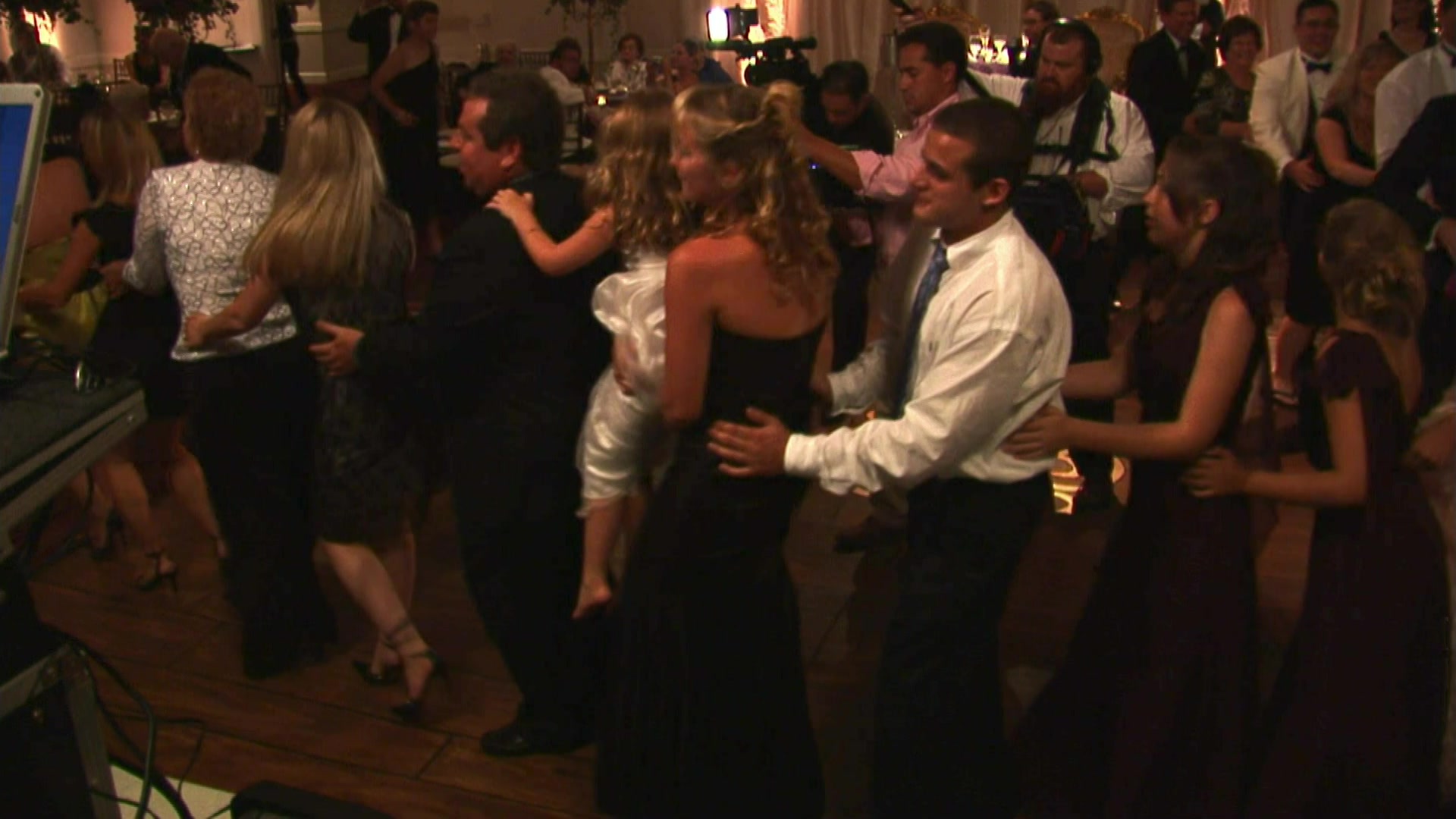 A chorus line welcomes the newlyweds before they break into a fiery tango, making their beachside reception sizzle.